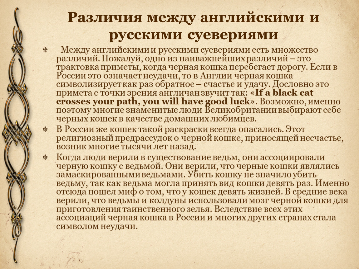 сходства и различия между русскими и английскими суевериями все-таки существуют;