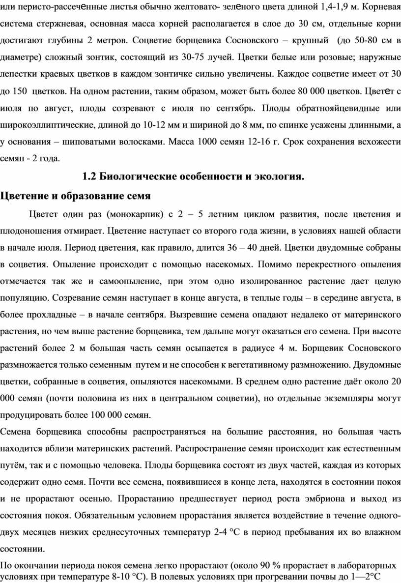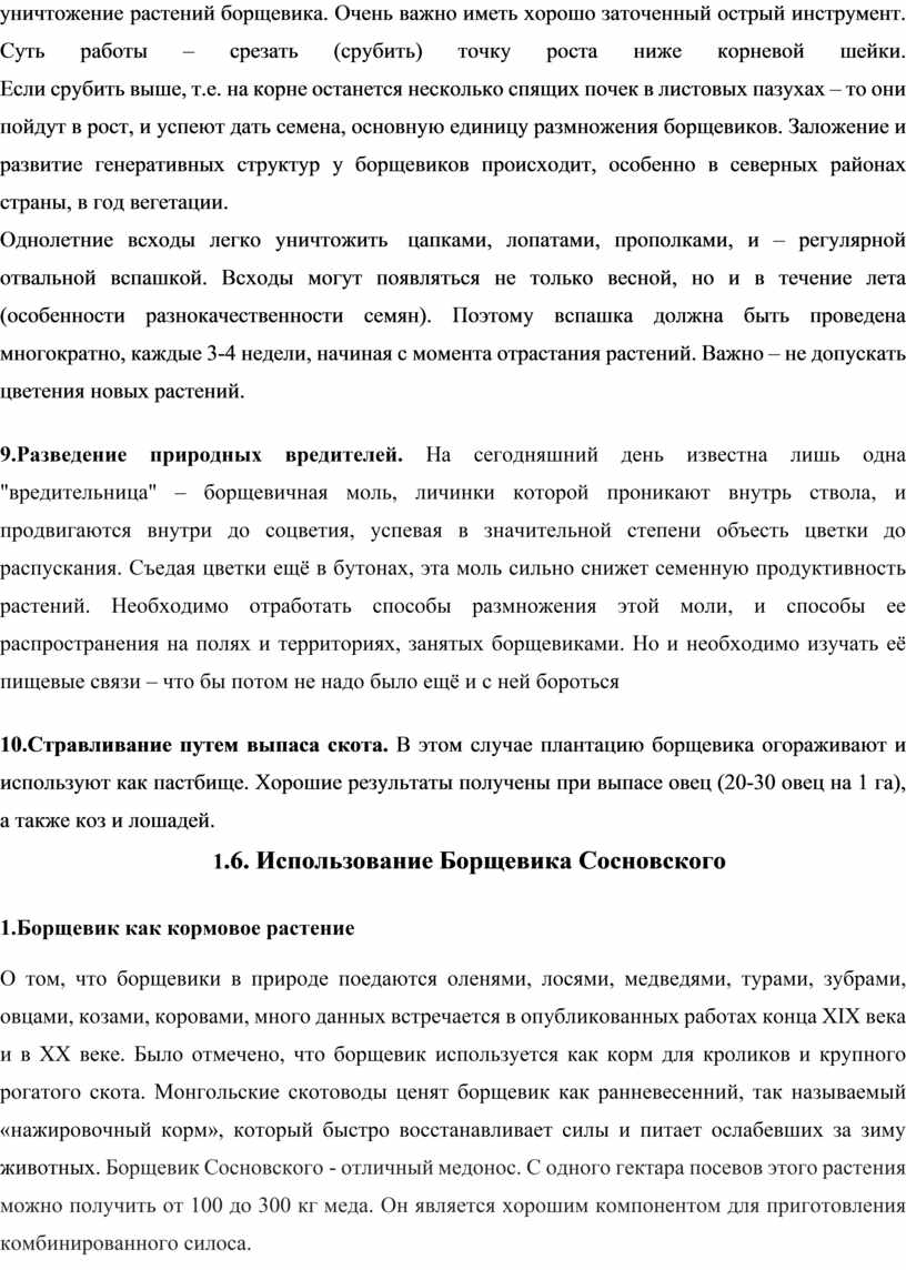 1.5. Способы борьбы с борщевиком Сосновского …………………………………………………15