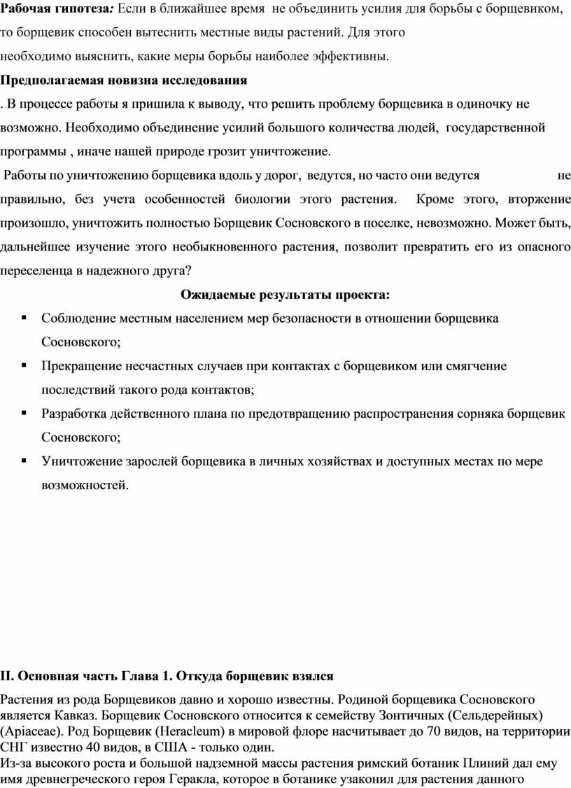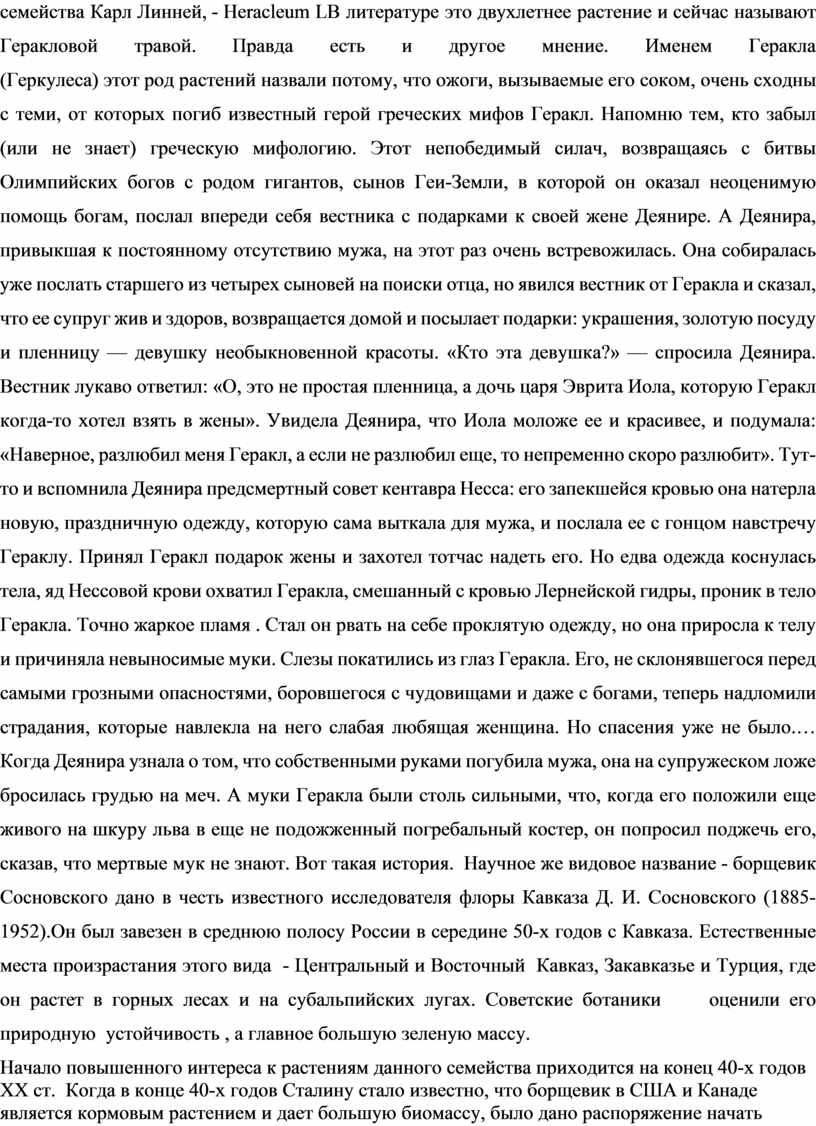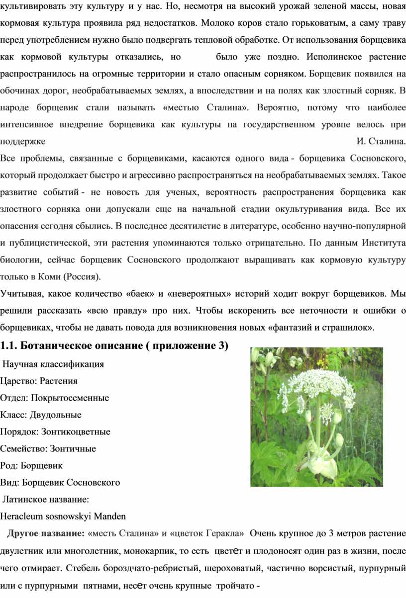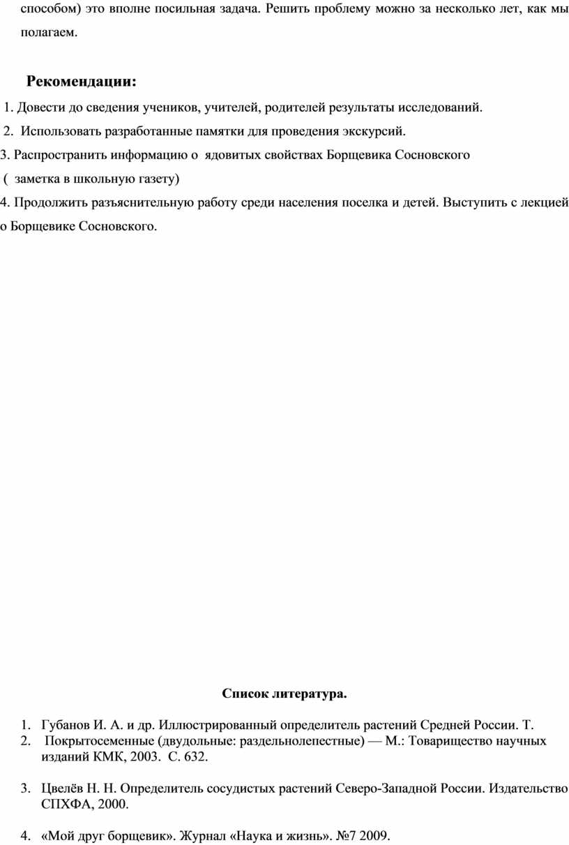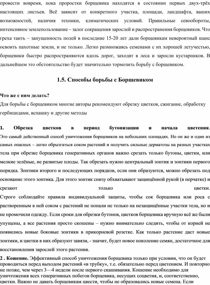 1.Изучить литературу о борщевике и способы
