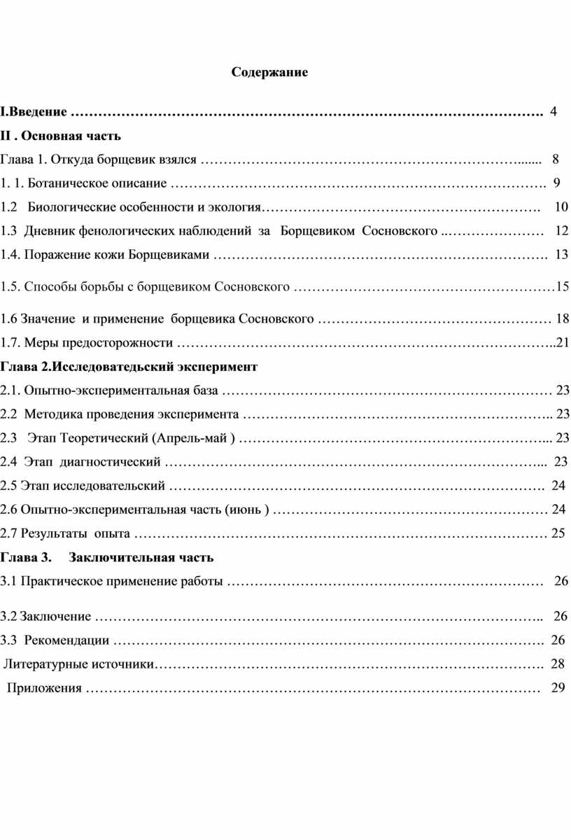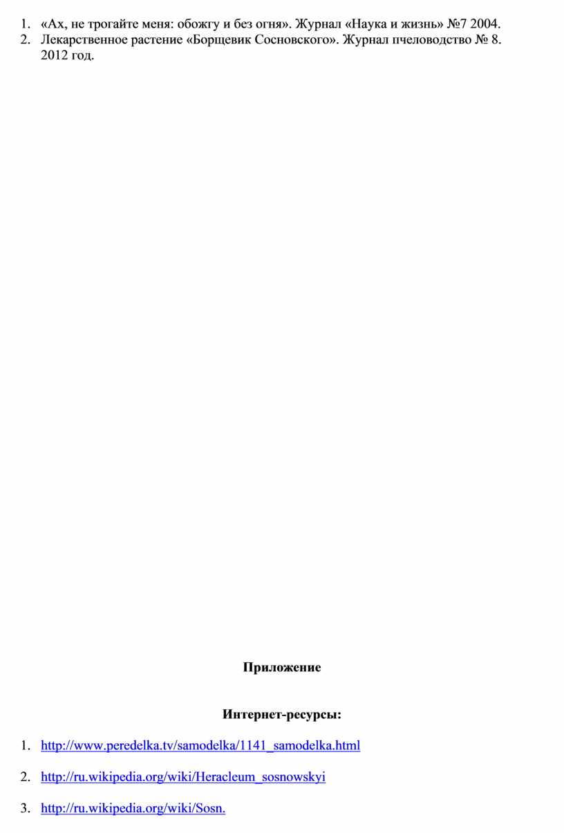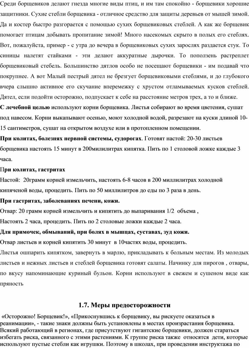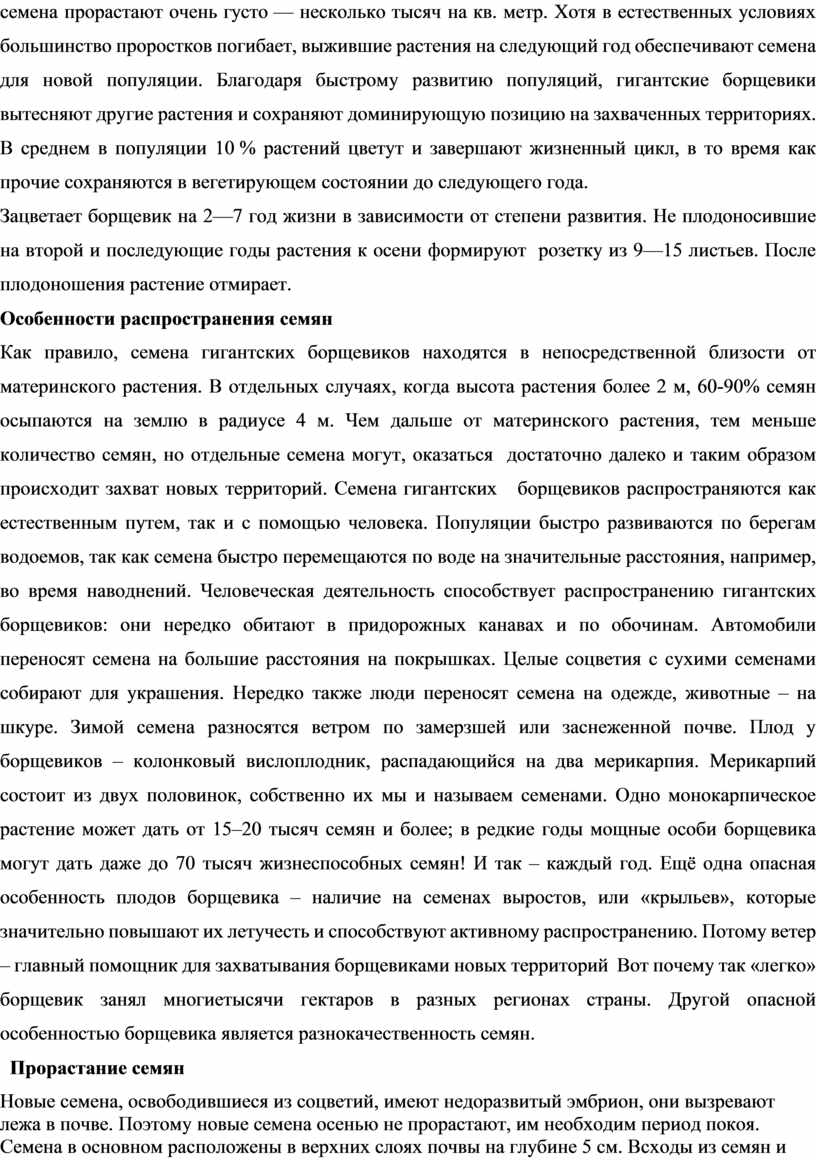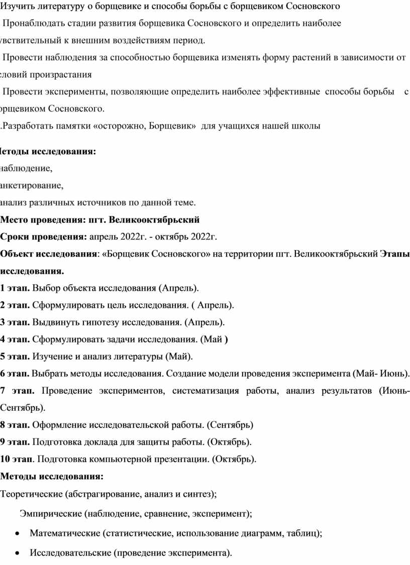 1.Изучить литературу о борщевике и способы