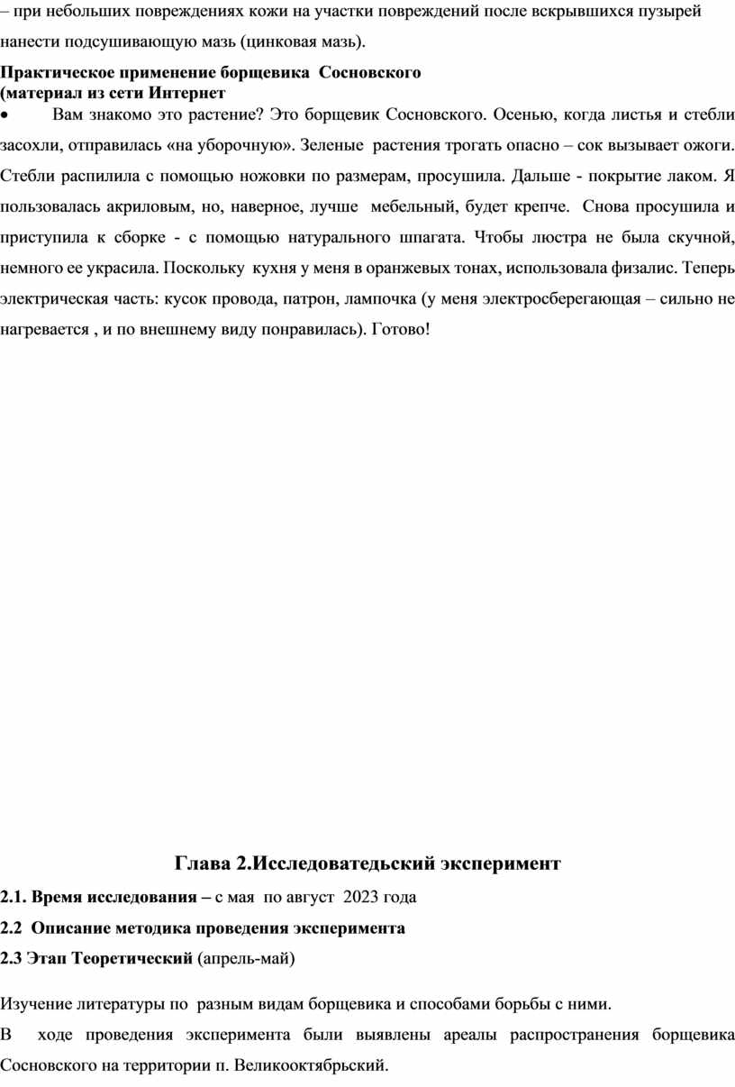 2. Изученные методы борьбы с Борщевиком Сосновского были предложены в админирацию п. Великоооктябрьский