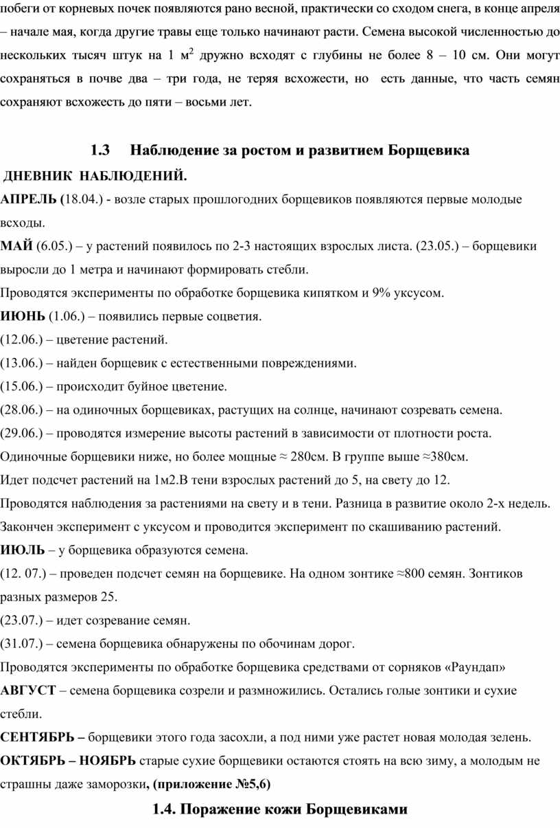 1.3 Дневник фенологических наблюдений за Борщевиком Сосновского ..………………… 12