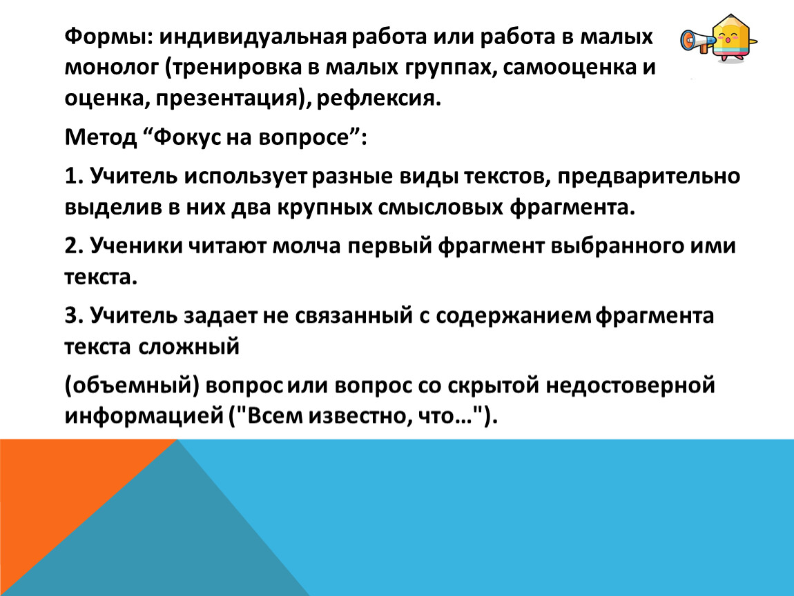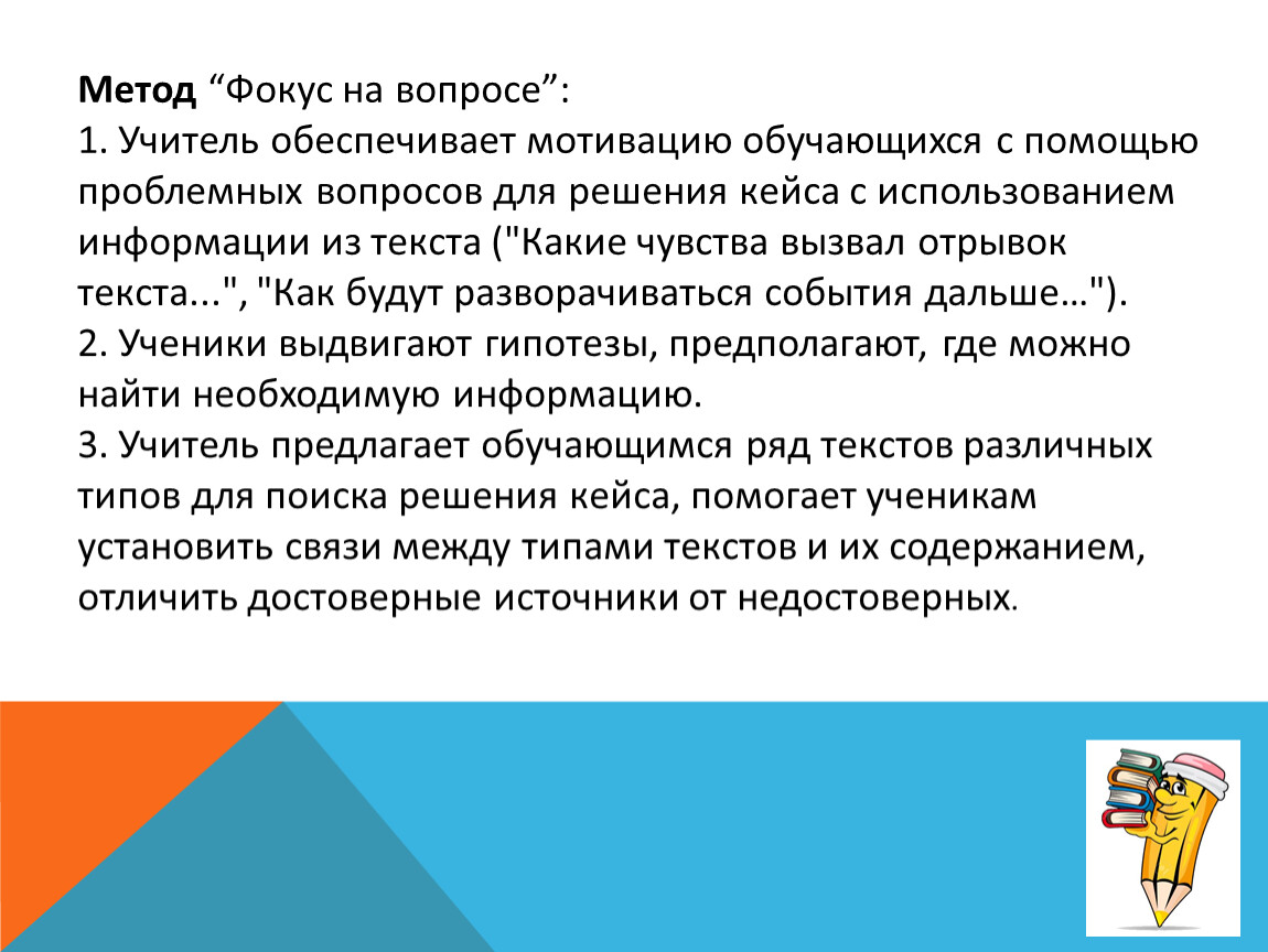 5. Учитель помогает ученикам оценивать и структурировать информацию, чтобы аргументированно ответить на сложный (объемный) вопрос или на вопрос со скрытой недостоверной информацией.