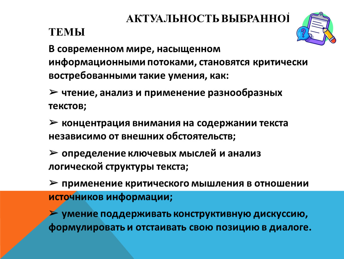 В современном мире, насыщенном информационными потоками, становятся критически востребованными такие умения, как: