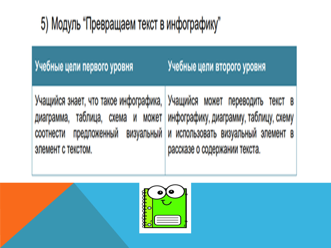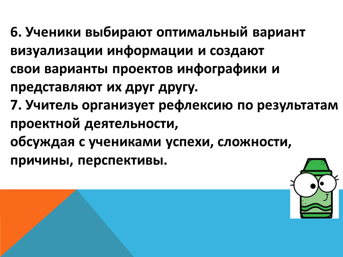 сплошным текстом, и помогает ученикам подобрать базу информационных ресурсов для выполнения проекта инфографики.