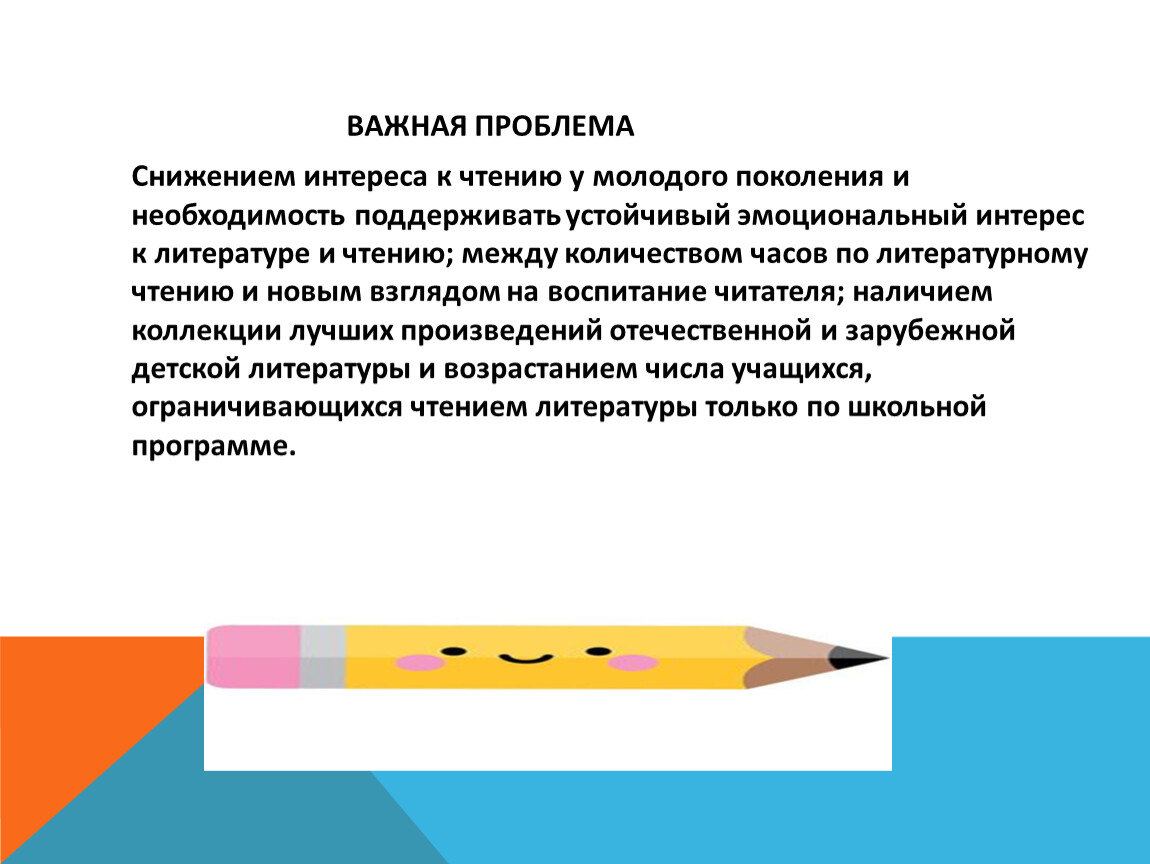 Снижением интереса к чтению у молодого поколения и необходимость поддерживать устойчивый эмоциональный интерес к литературе и чтению; между количеством часов по литературному чтению и новым взглядом на воспитание читателя; наличием коллекции лучших произведений отечественной и зарубежной детской литературы и возрастанием числа учащихся, ограничивающихся чтением литературы только по школьной программе.