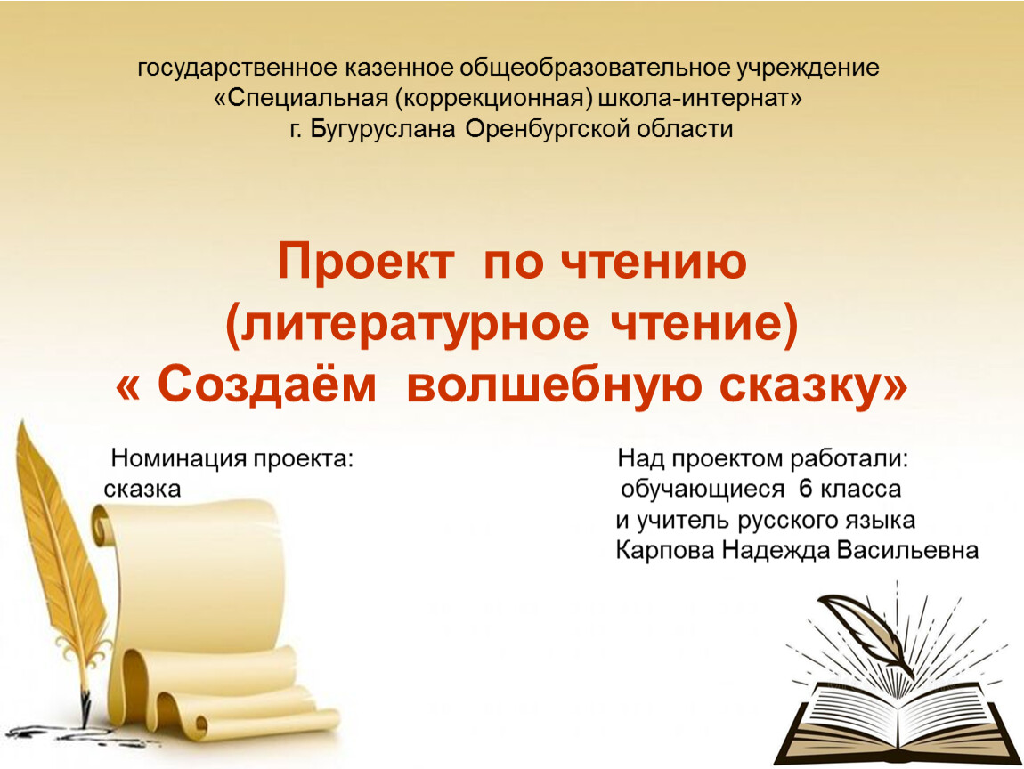 Номинация проекта: Над проектом работали: сказка обучающиеся 6 класса