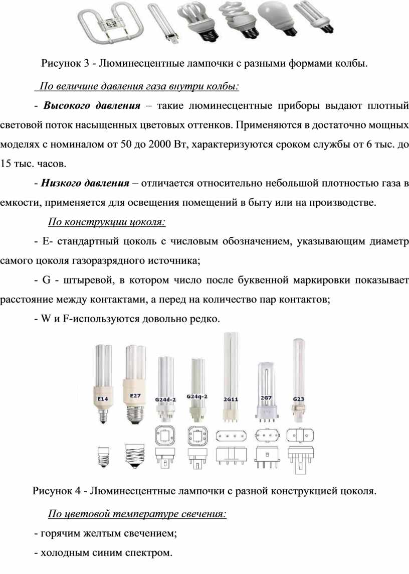 Все разнообразие люминесцентных ламп характеризуется достаточно большим спектром параметров. Но в рамках данного проекта рассмотрим наиболее отличительные из них: