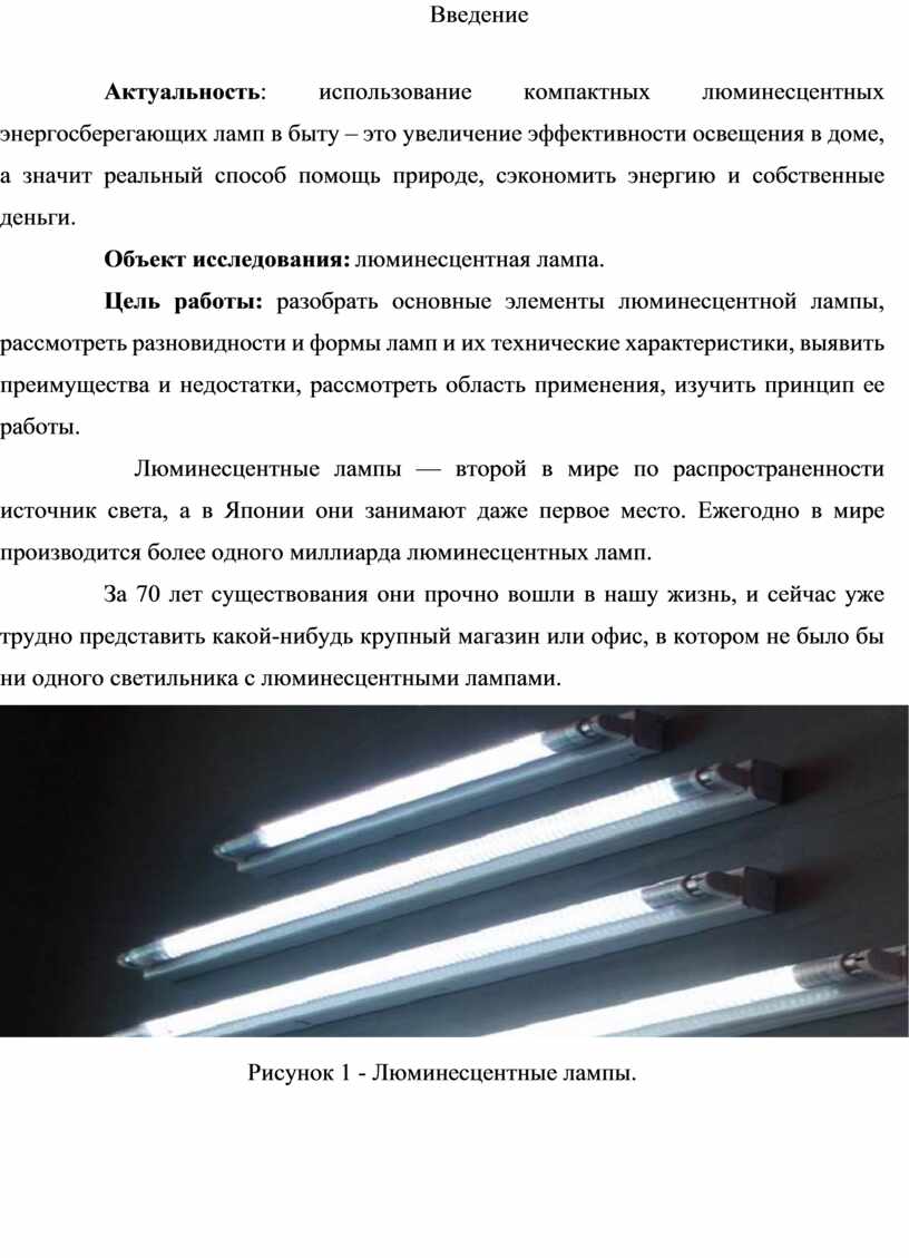 Цель работы: разобрать основные элементы люминесцентной лампы, рассмотреть разновидности и формы ламп и их технические характеристики, выявить преимущества и недостатки, рассмотреть область применения, изучить принцип ее работы.