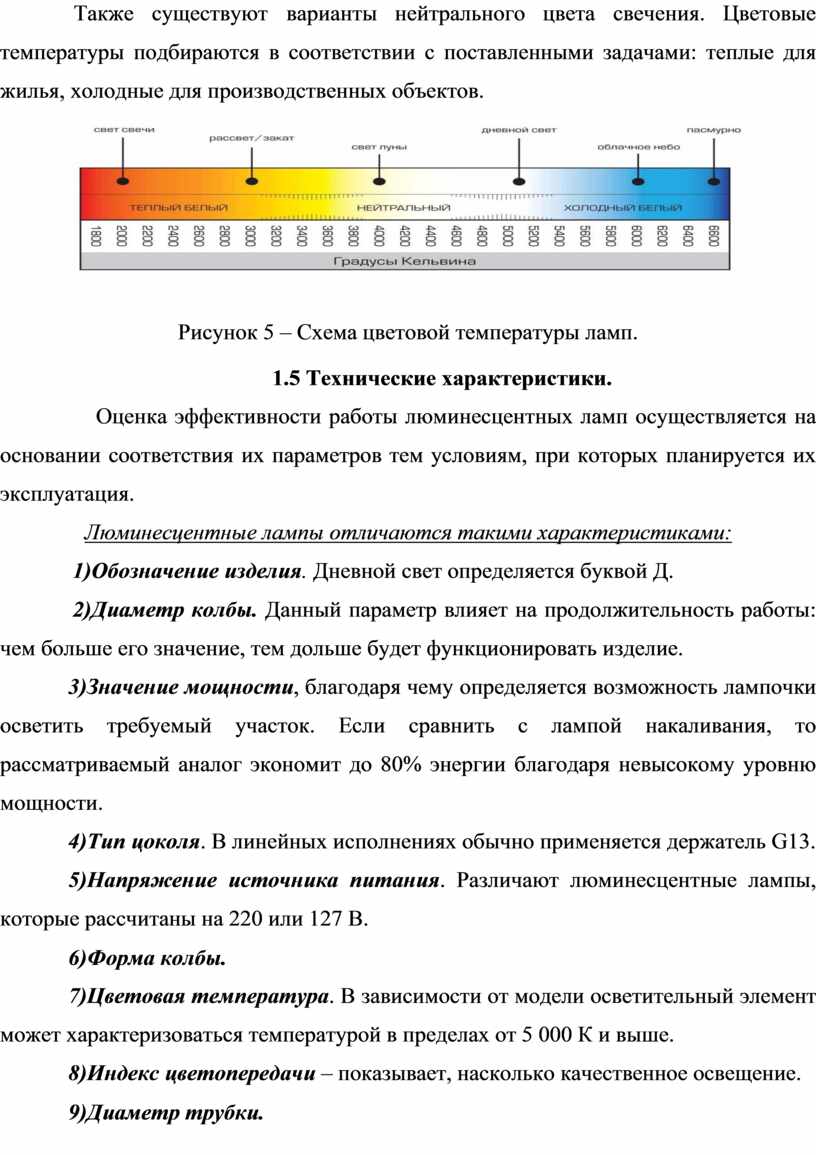 7)Цветовая температура. В зависимости от модели осветительный элемент может характеризоваться температурой в пределах от 5 000 К и выше.