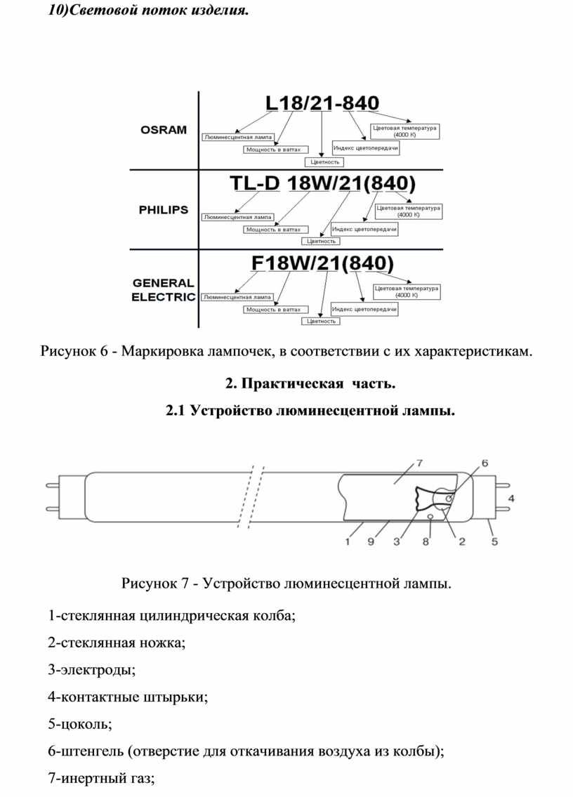5)Напряжение источника питания. Различают люминесцентные лампы, которые рассчитаны на 220 или 127 В.