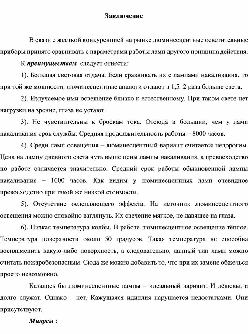 5. Люминесцентные лампы. Преимущества и недостатки. [Электронный ресурс]// infolamps - URL: http://www.lamps.ru/stati/lyuminescentnye-lampy/ (Дата обращения 07.02.22)