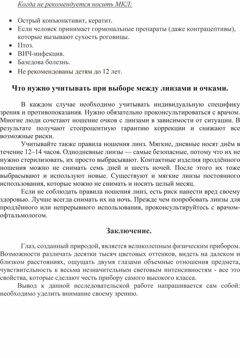 Когда не рекомендуется носить МКЛ: