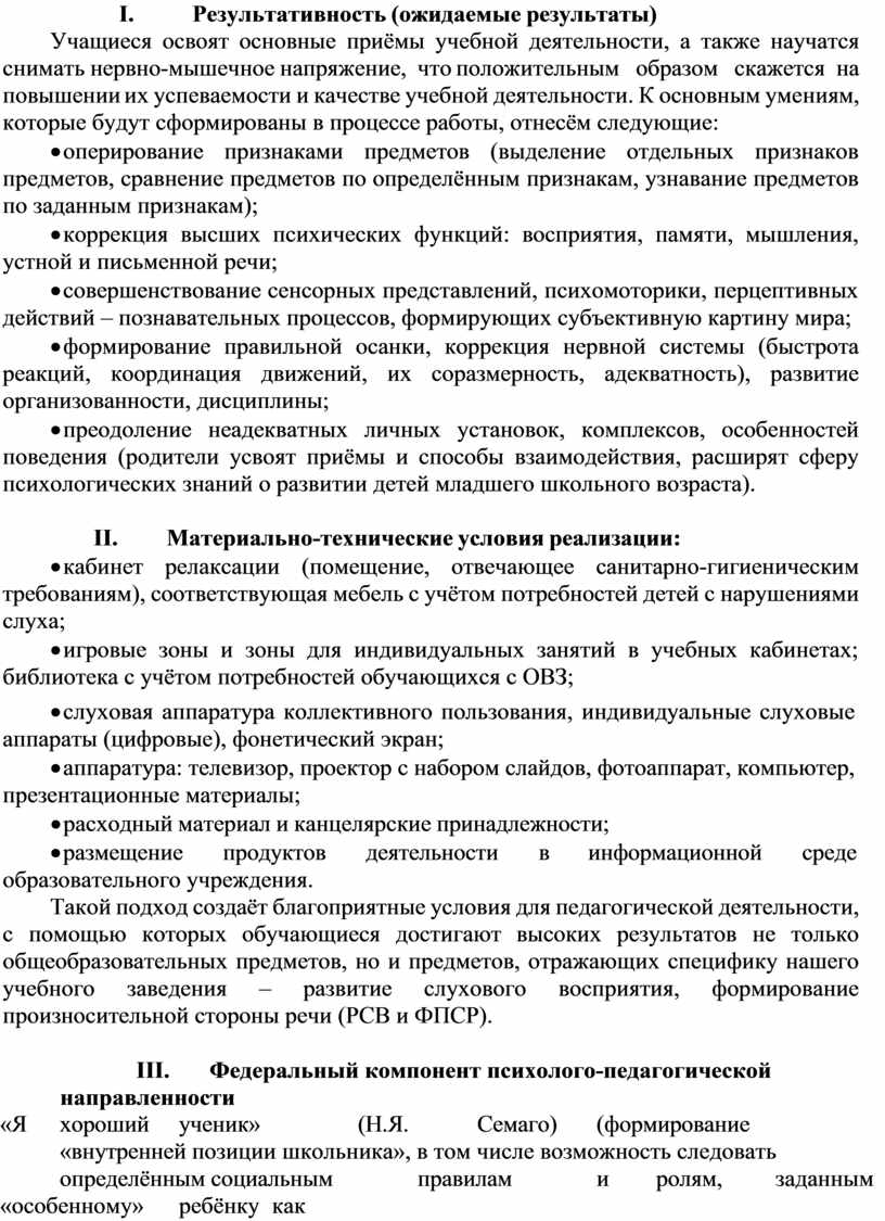 Такой подход создаёт благоприятные условия для педагогической деятельности, с помощью которых обучающиеся достигают высоких результатов не только общеобразовательных предметов, но и предметов, отражающих специфику нашего учебного заведения – развитие слухового восприятия, формирование произносительной стороны речи (РСВ и ФПСР).