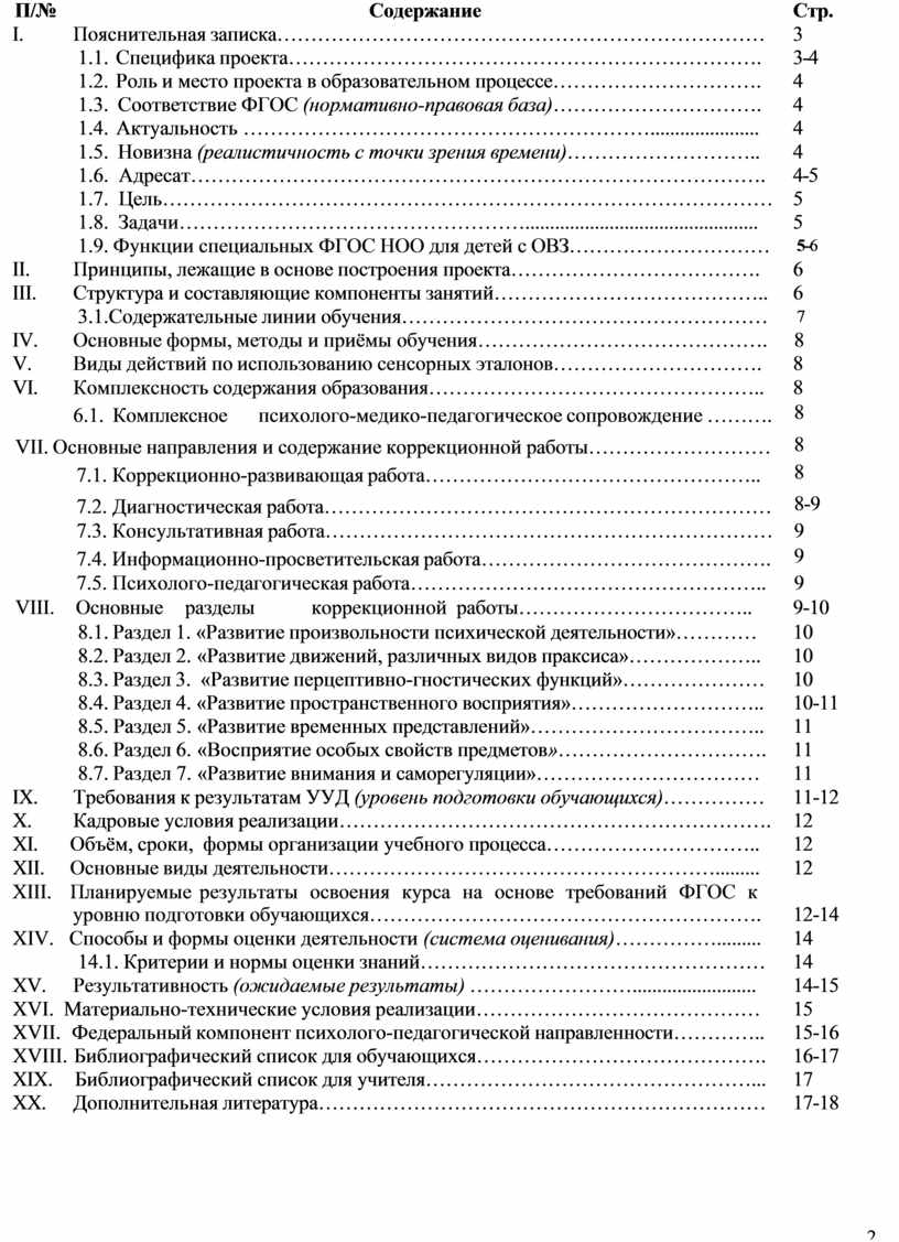 VIII. Основные разделы коррекционной работы…………………………….. |