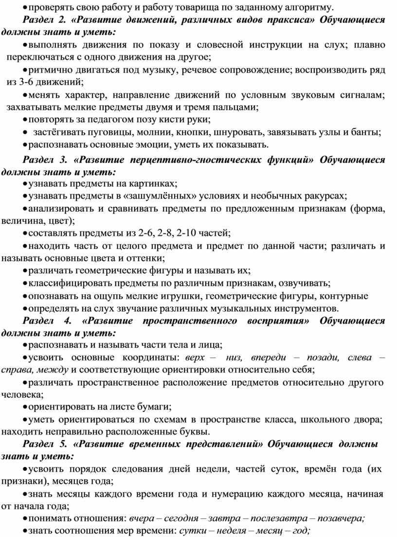 Раздел 5. «Развитие временных представлений» Обучающиеся должны знать и уметь: