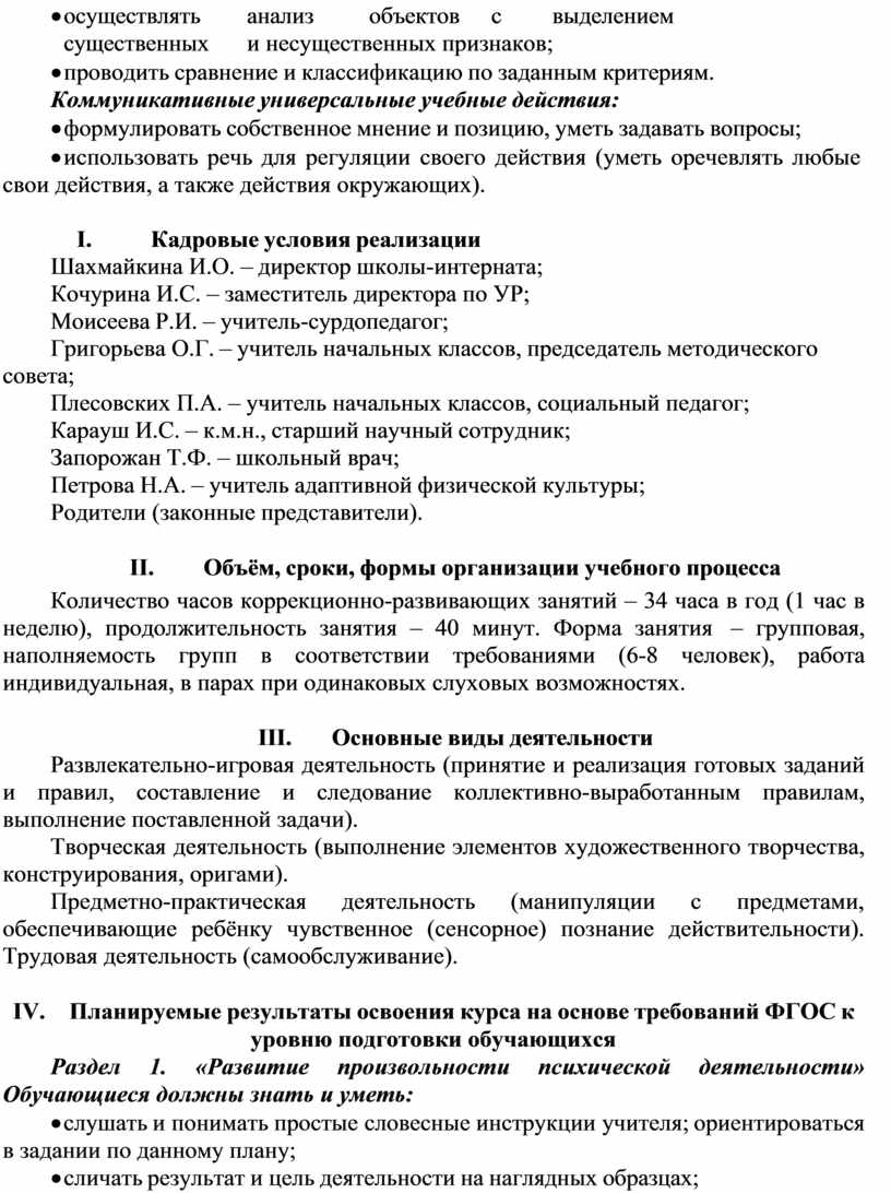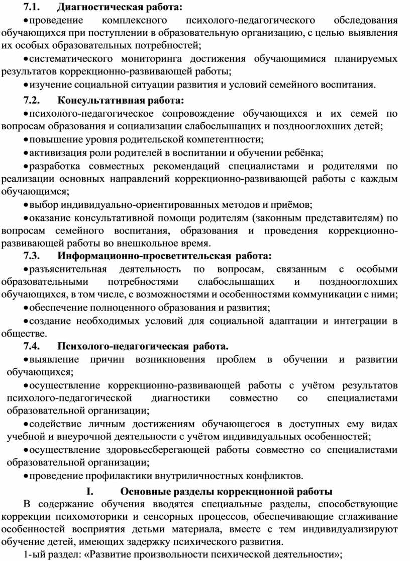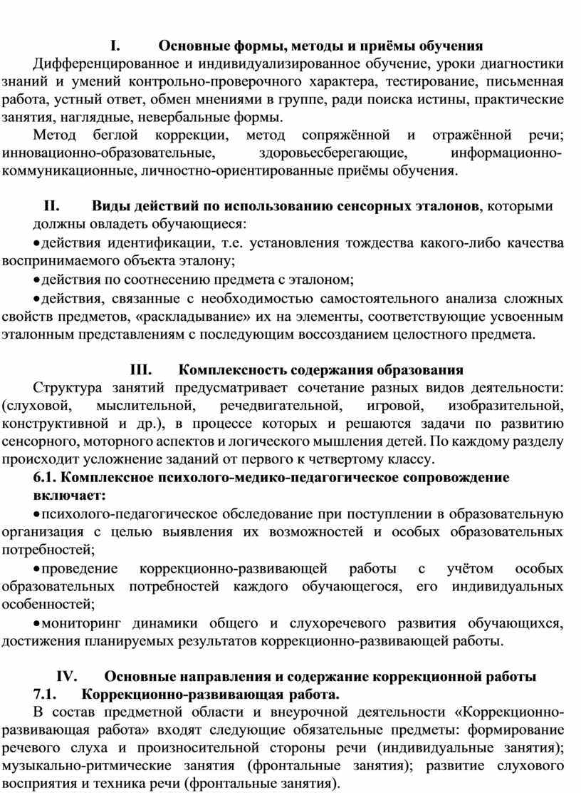 VII. Основные направления и содержание коррекционной работы……………………… |