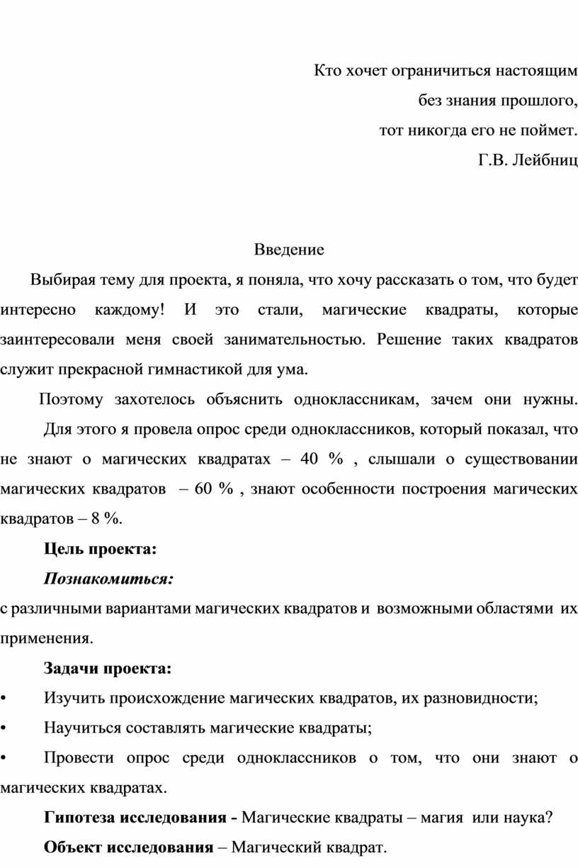 Гипотеза исследования - Магические квадраты – магия или наука?