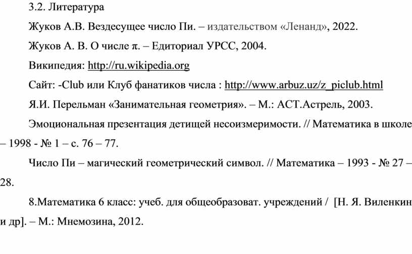 Жуков А. В. О числе π. – Едиториал УРСС, 2004.