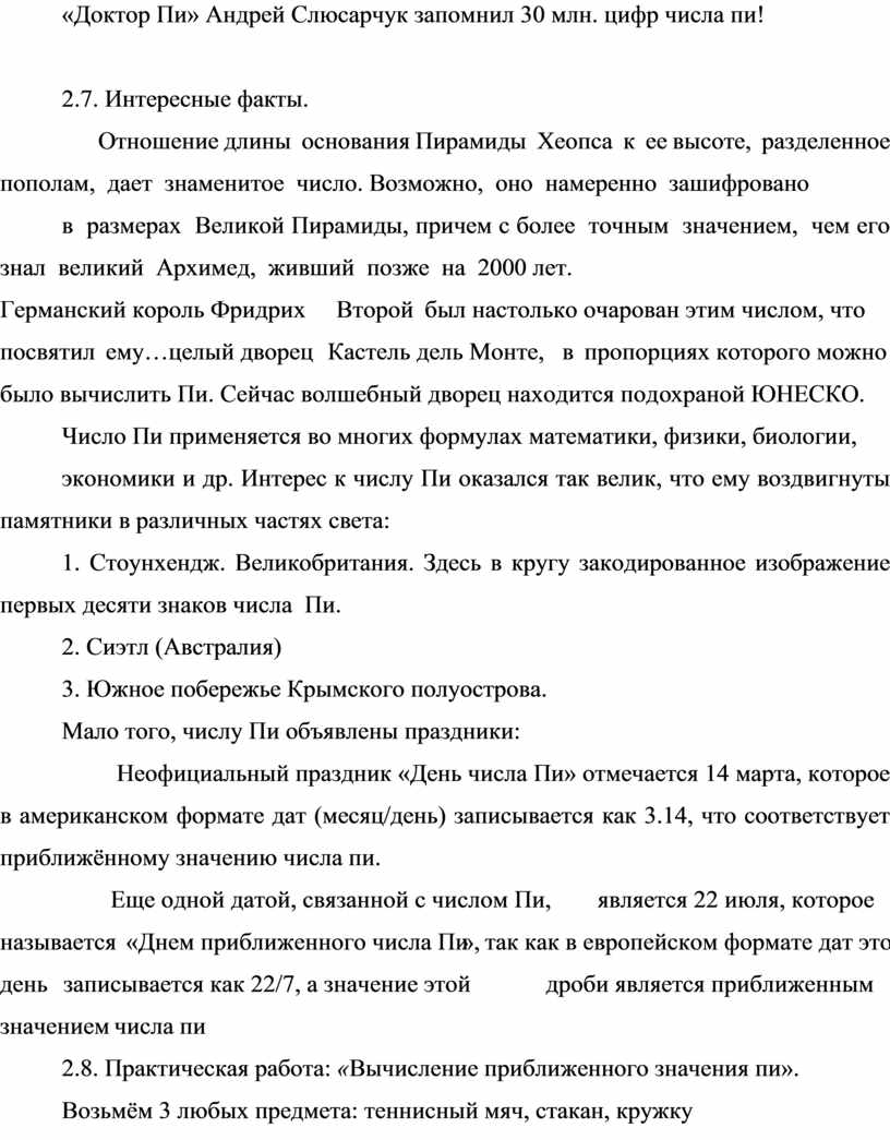 2.4. Поэзия числа p…………………………………………………………….. 6