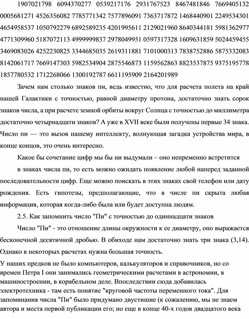 2.5. Как запомнить число "Пи" с точностью до одиннадцати знаков