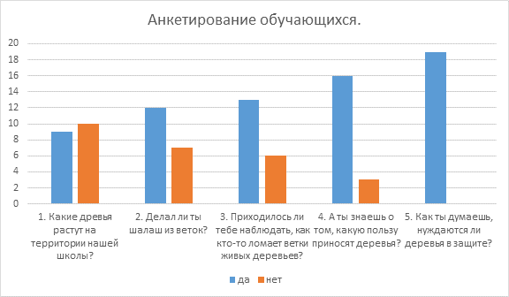 Таким образом мы сделали следующие выводы: школьники знают не все деревья, которые растут на территории нашей школы; не все школьники бережно относятся к живой природе. [Приложение 1]