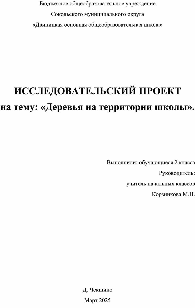 на тему: «Деревья на территории школы».