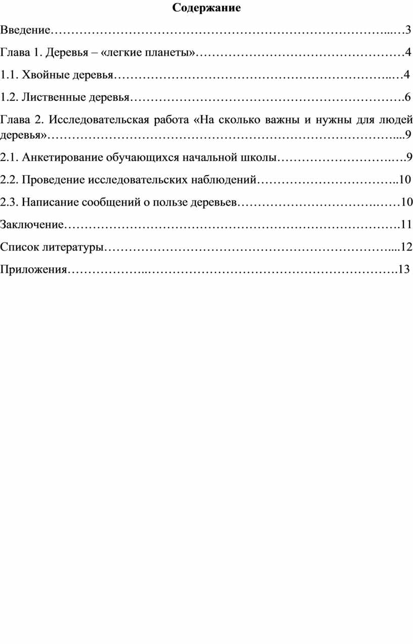 Глава 2. Исследовательская работа «На сколько важны и нужны для людей деревья»…………………………………………………………………………....9