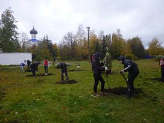 жители поселка высадили 70 саженцев рябины, липы и каштана. Там же появятся