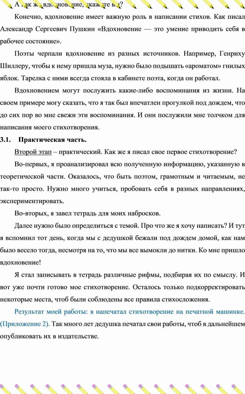 Второй этап – практический. Как же я писал свое первое стихотворение?