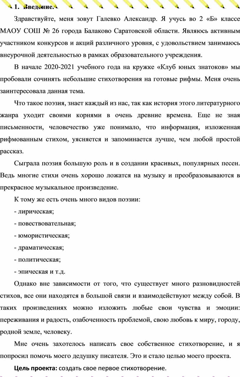 1. Изучить правила написания стихотворения на примере дедушкиных стихов.