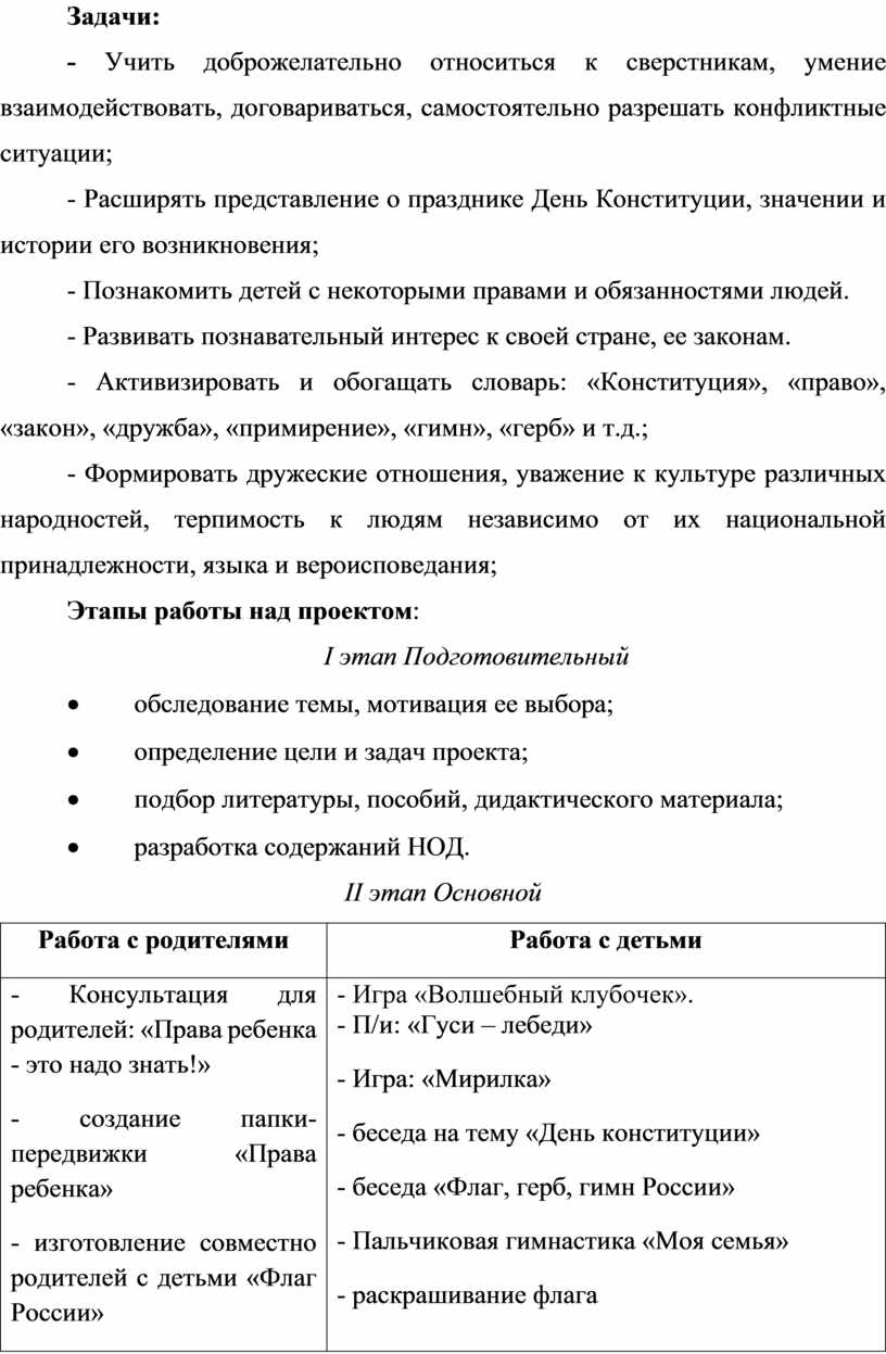 - Расширять представление о празднике День Конституции, значении и истории его возникновения;