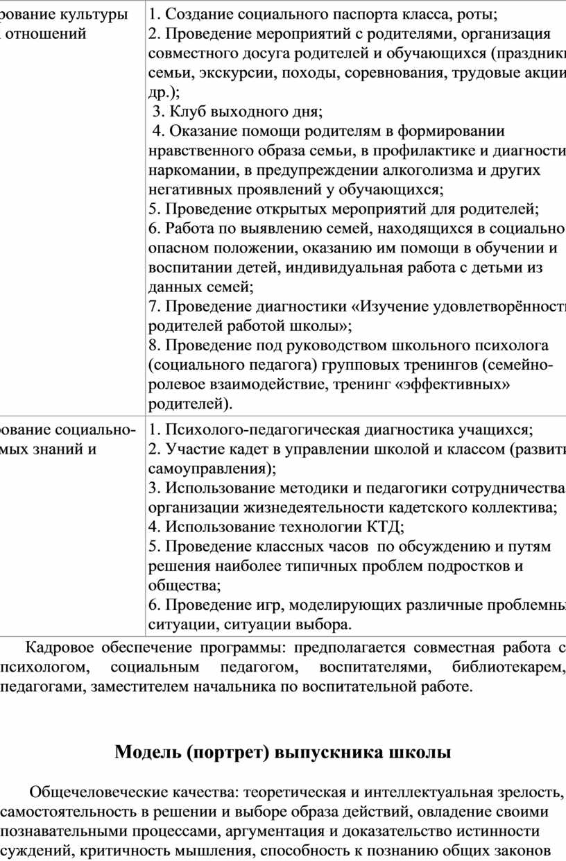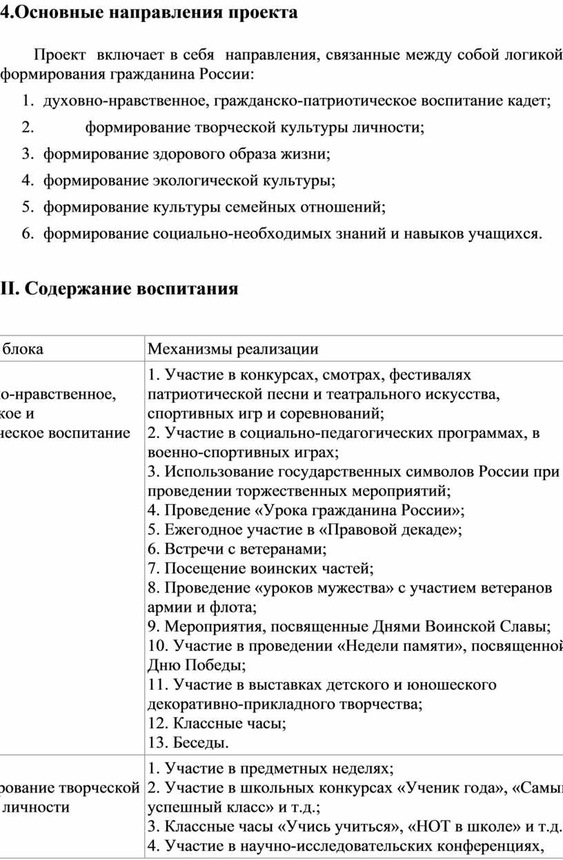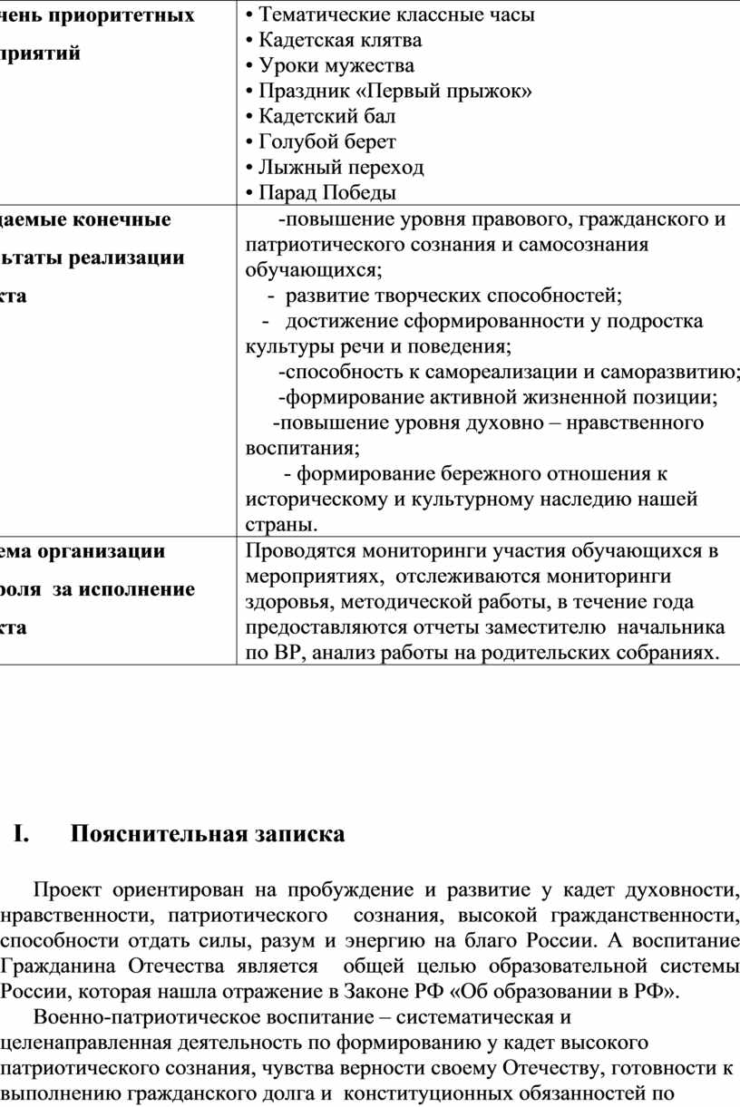 1. духовно-нравственное, гражданско-патриотическое воспитание кадет;