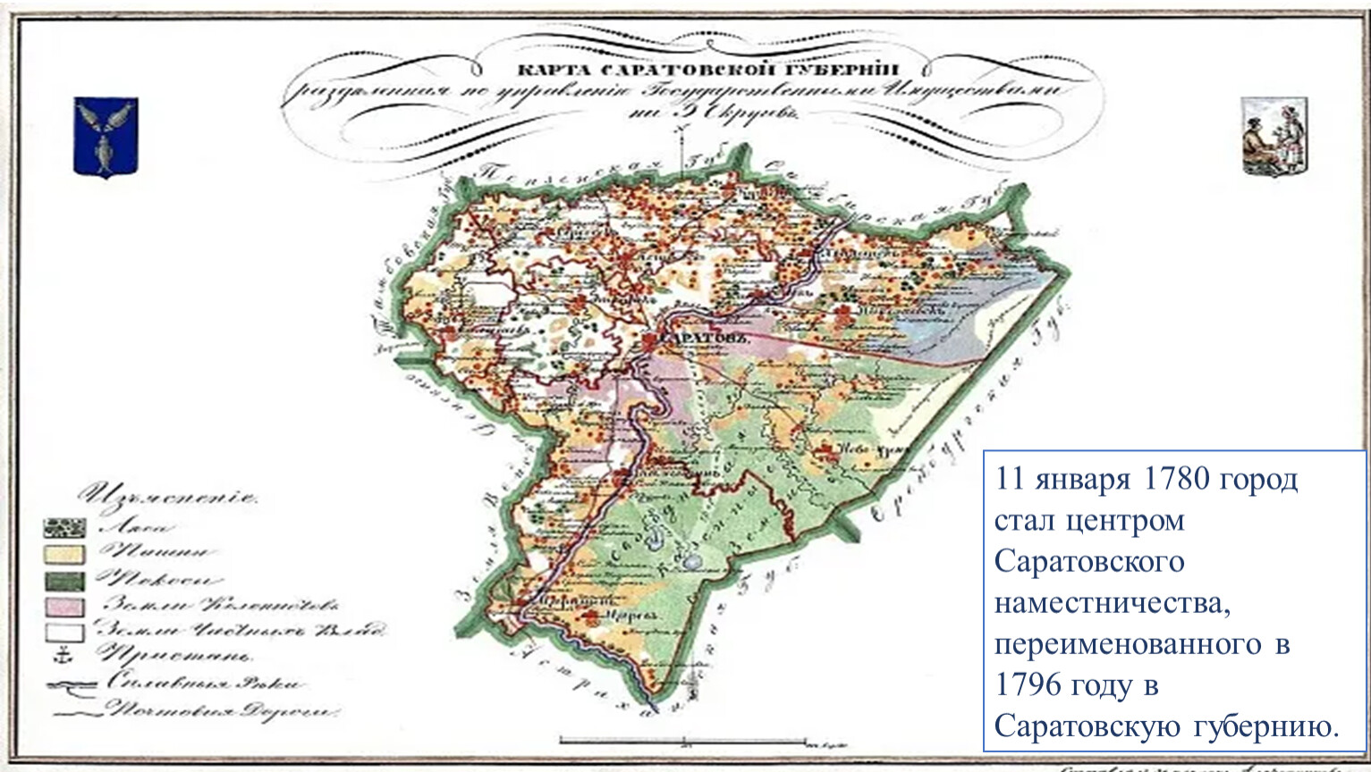 11 января 1780 город стал центром Саратовского наместничества, переименованного в 1796 году в Саратовскую губернию.