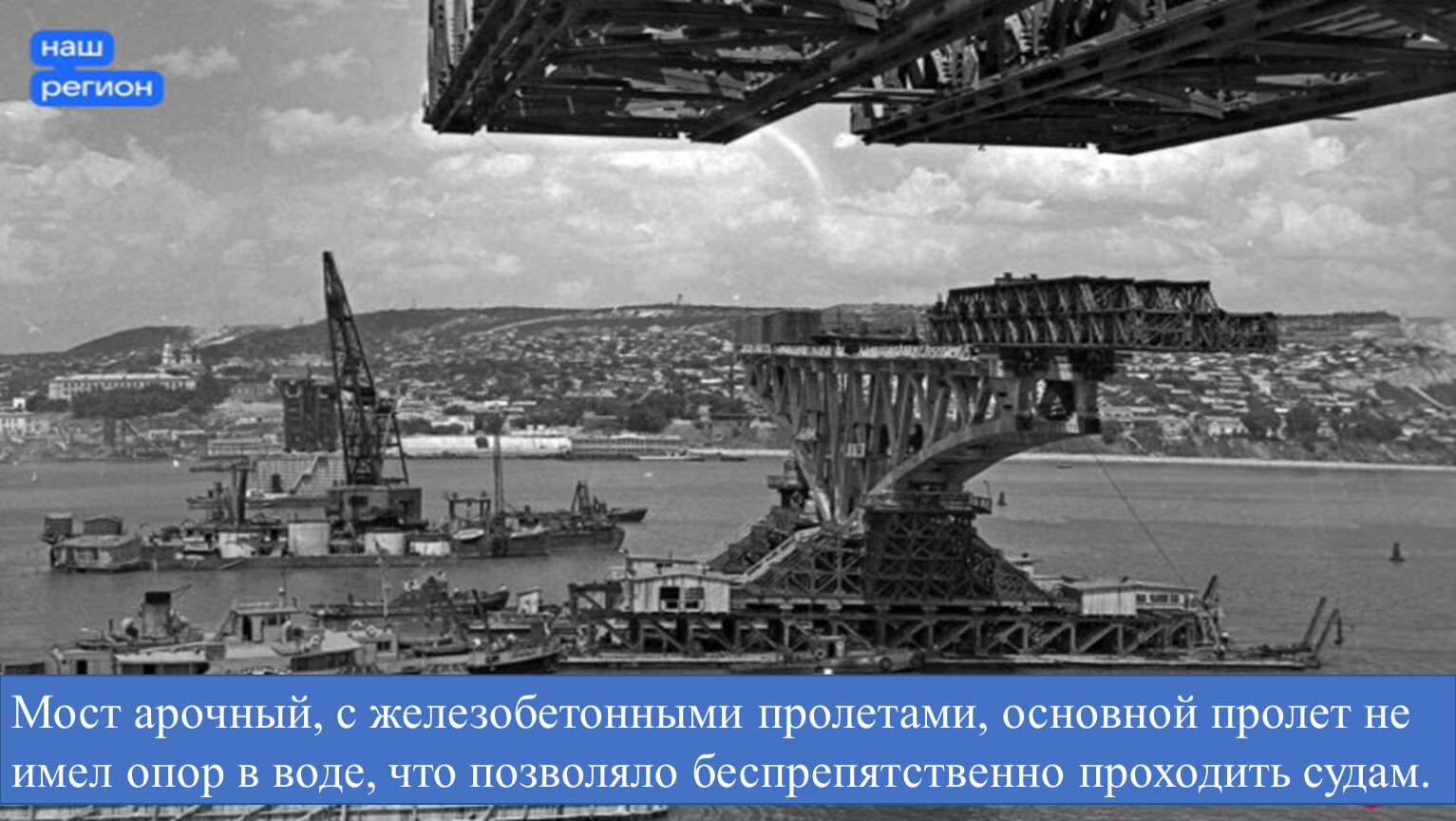 Мост арочный, с железобетонными пролетами, основной пролет не имел опор в воде, что позволяло беспрепятственно проходить судам.