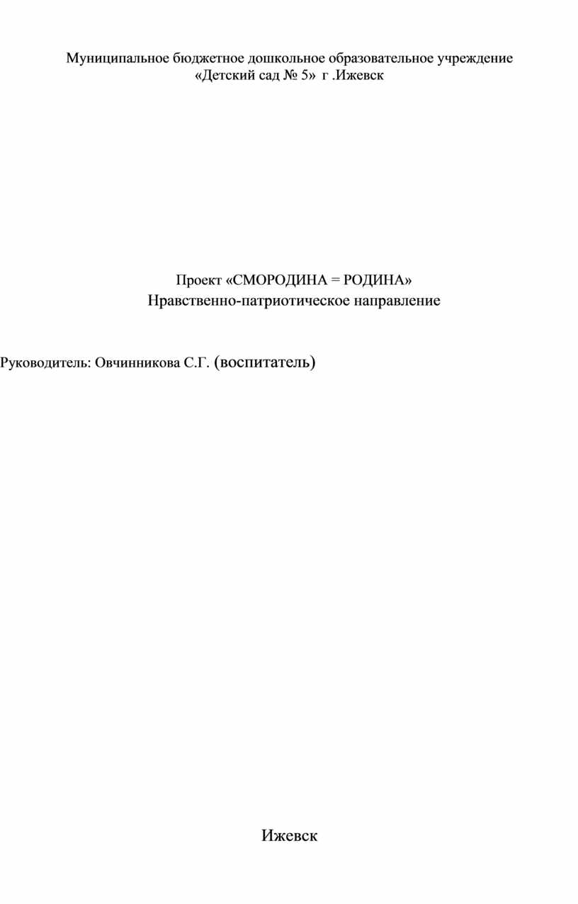 Проект «СМОРОДИНА = РОДИНА»