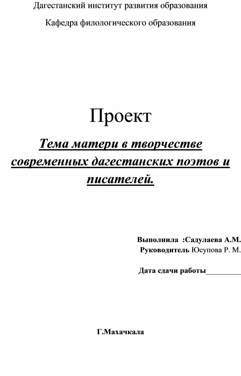 Тема матери в творчестве современных дагестанских поэтов и писателей.