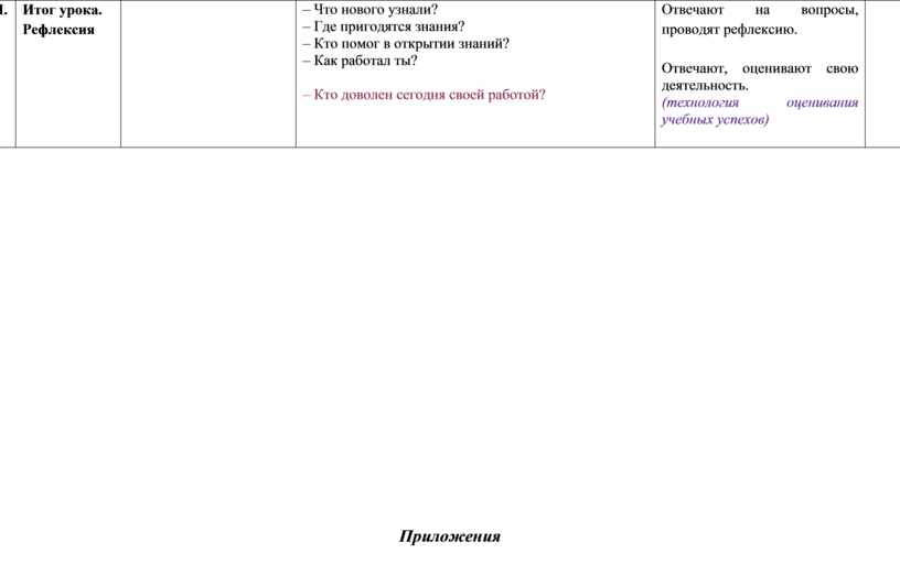 – Что нового узнали? – Где пригодятся знания? – Кто помог в открытии знаний? – Как работал ты?