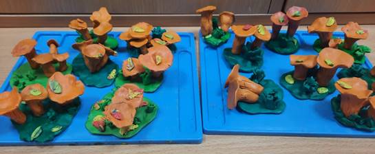 Лепка: «За грибами в лес осенний» «Подсолнухи у плетня» «Чипполино»