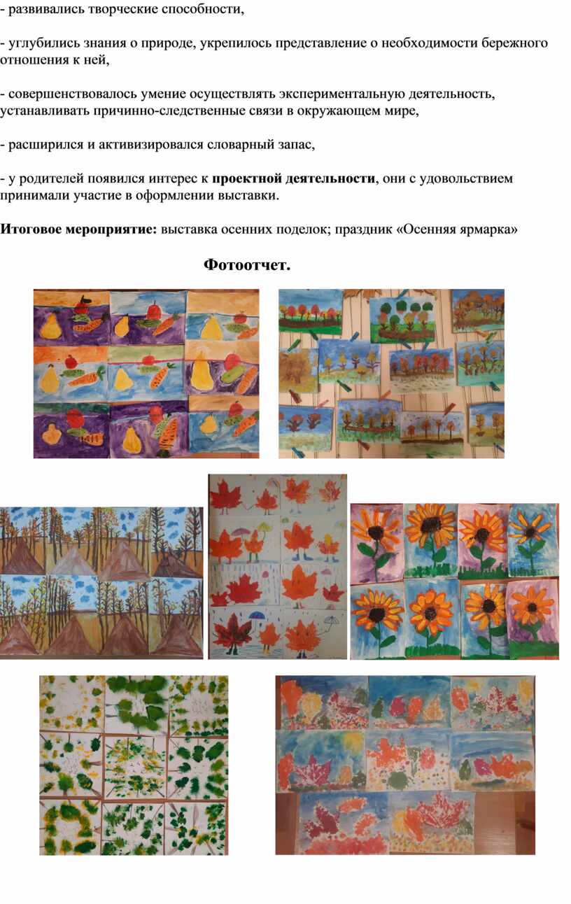 Итоговое мероприятие: выставка осенних поделок; праздник «Осенняя ярмарка»