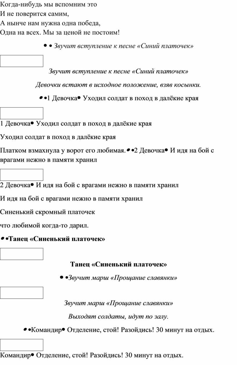 Звучит вступление к песне «Синий платочек» Девочки встают в исходное положение, взяв косынки.