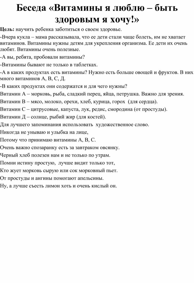 Беседа «Витамины я люблю – быть здоровым я хочу!»