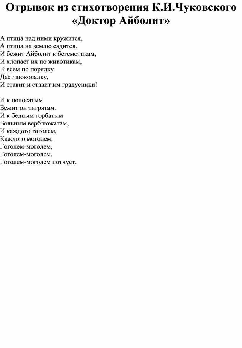 Отрывок из стихотворения К.И.Чуковского «Доктор Айболит»
