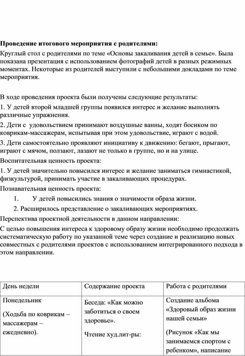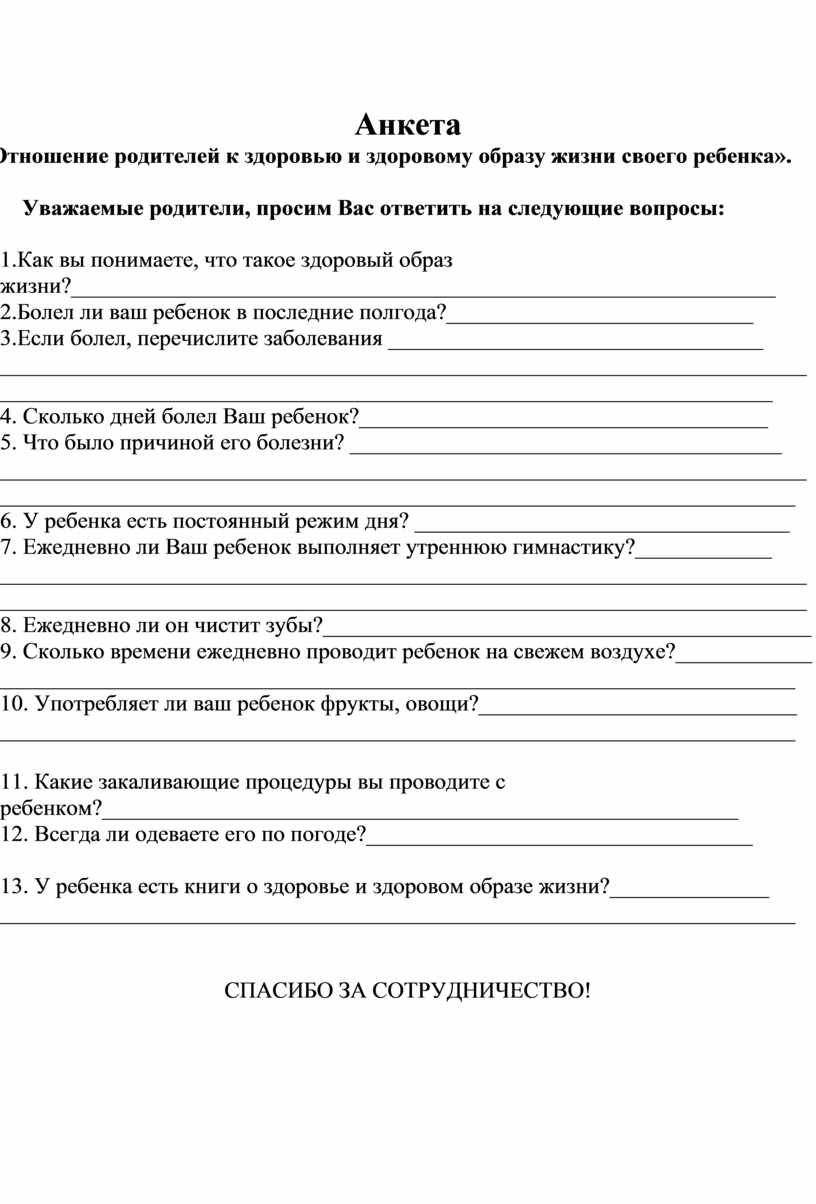 По проведенному опросу среди родителей были сделаны следующие выводы: многие родители не совсем понимают, что такое здоровый образ жизни; у них отсутствует представление о комплексном характере данного понятия. Родители воспитанников искренне убеждены в том, что они могут поддержать здоровье ребенка с помощью использования синтетических лекарственных препаратов, либо с помощью народных методов лечения во время течения болезни.