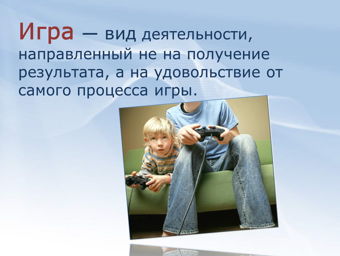 Игра — вид деятельности, направленный не на получение результата, а на удовольствие от самого процесса игры.