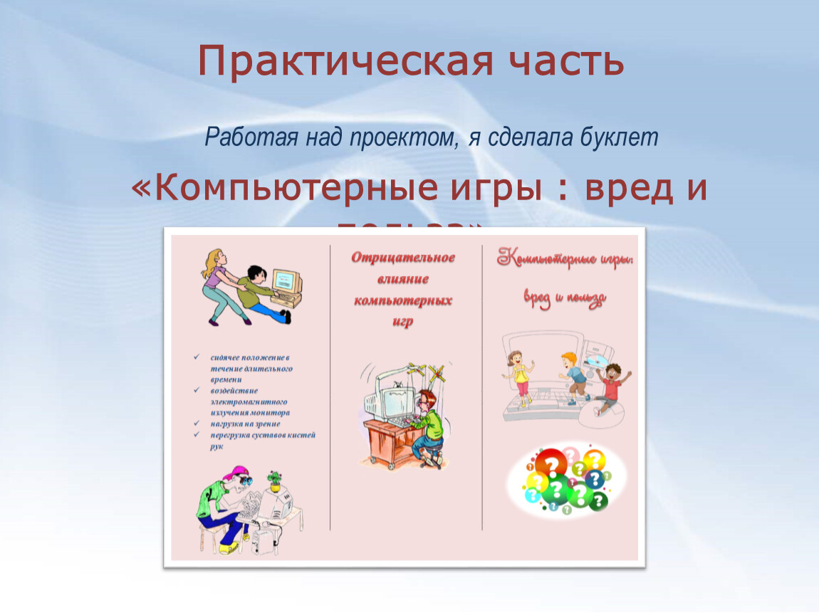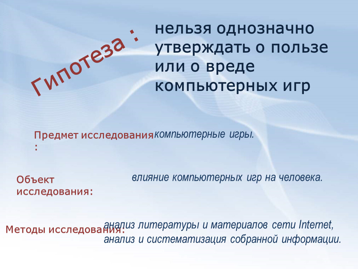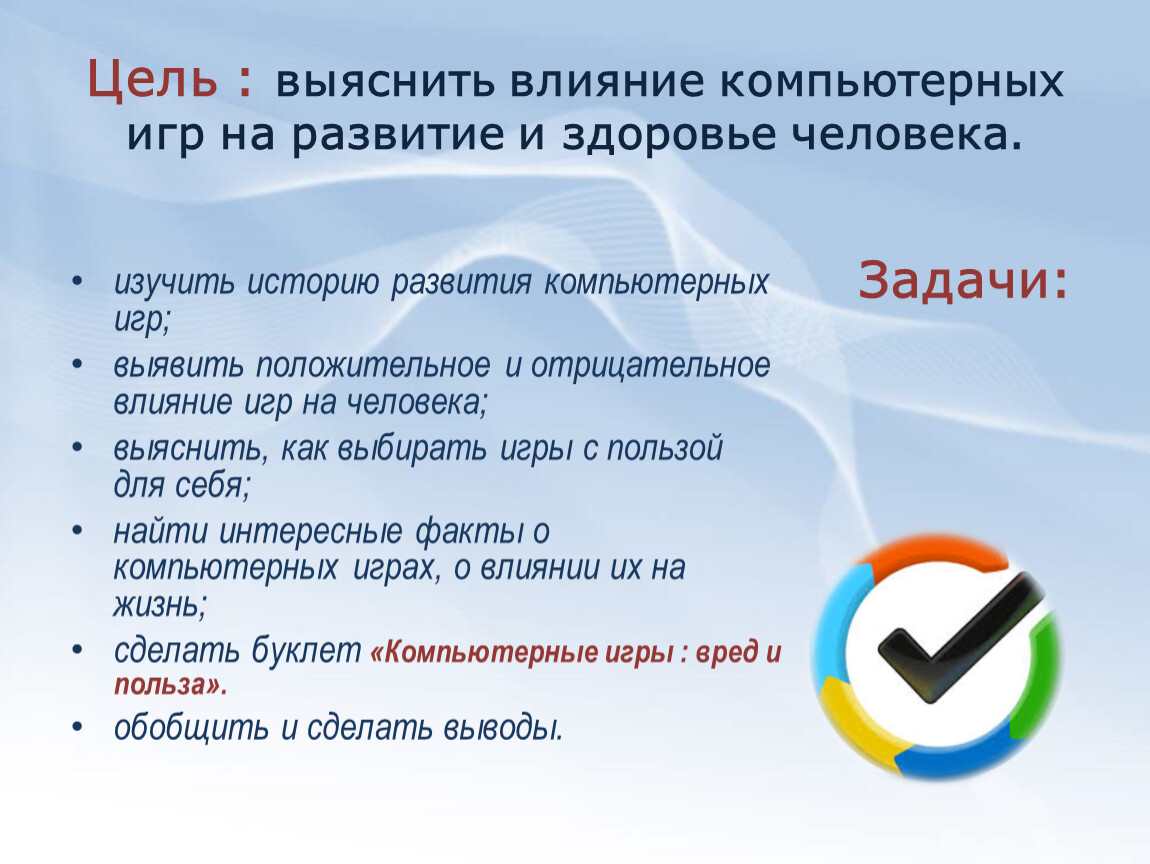 Цель : выяснить влияние компьютерных игр на развитие и здоровье человека.
