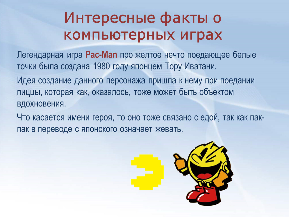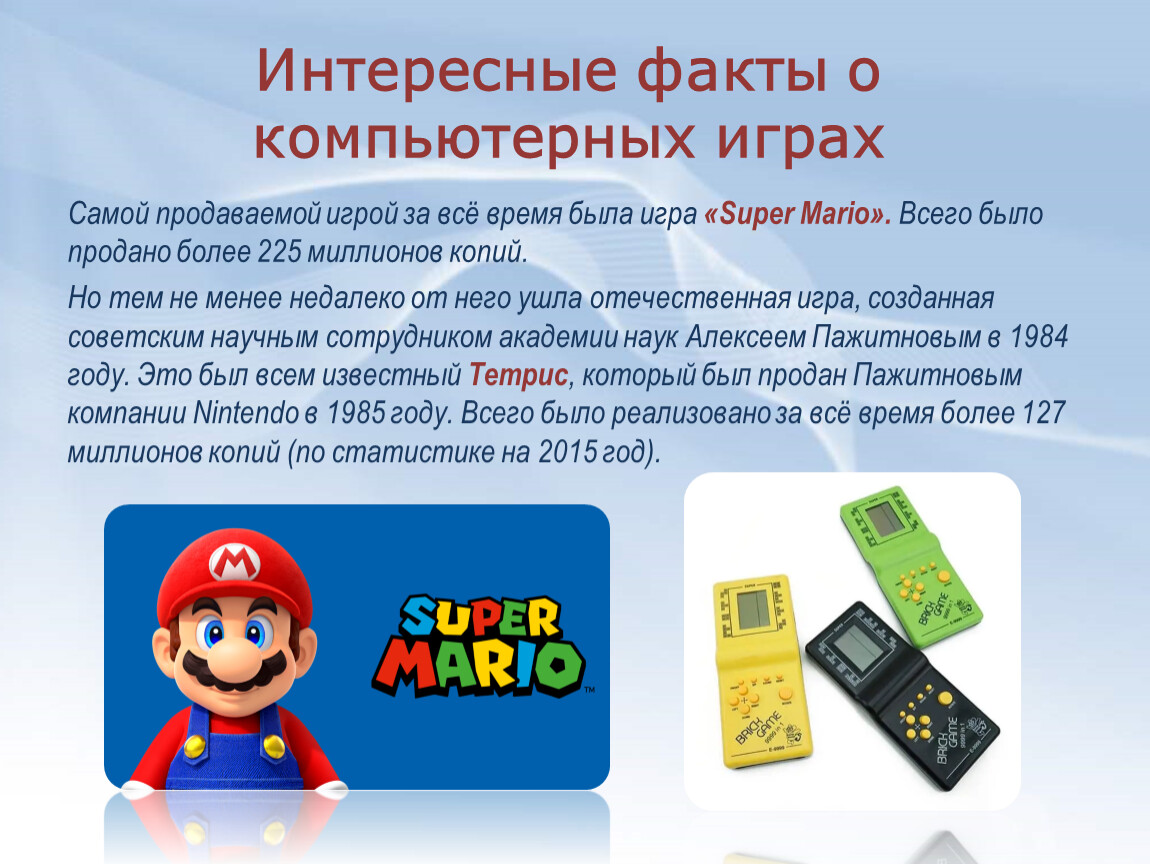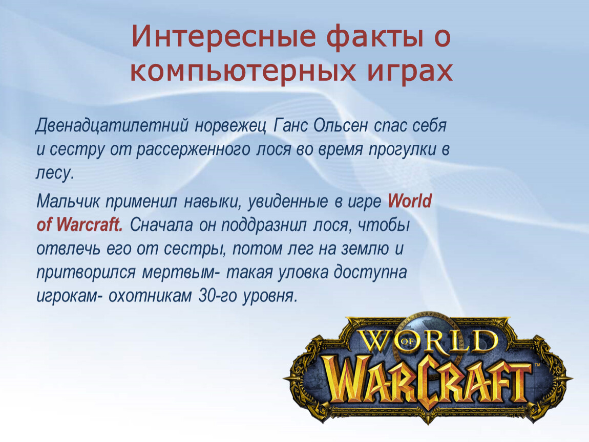 найти интересные факты о компьютерных играх, о влиянии их на жизнь;