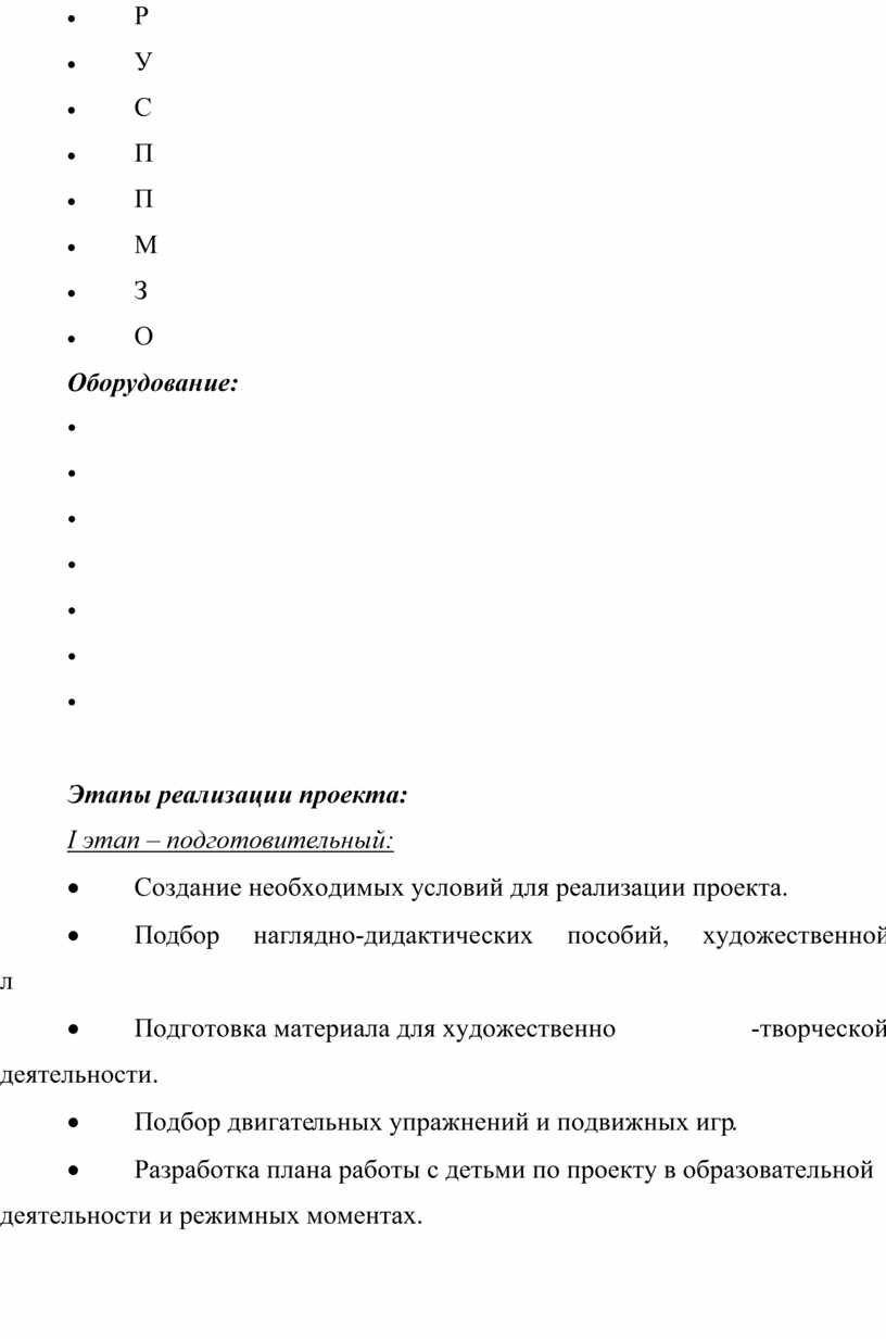 · Разработка плана работы с детьми по проекту в образовательной деятельности и режимных моментах.