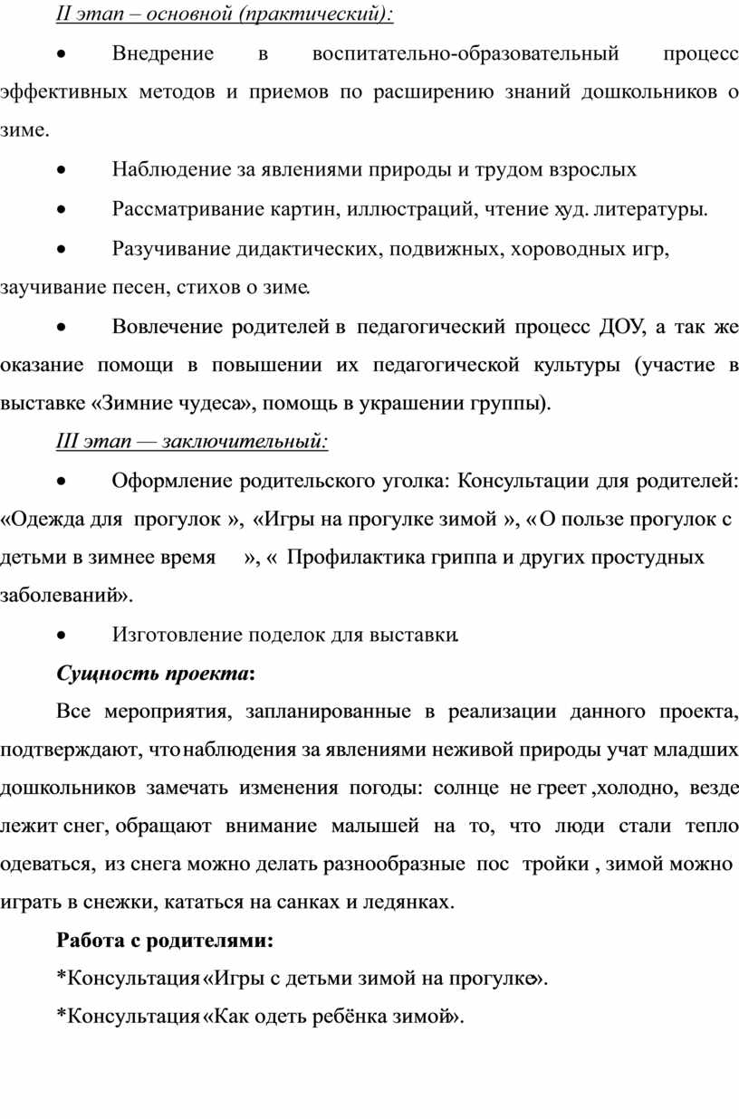 · Внедрение в воспитательно-образовательный процесс эффективных методов и приемов по расширению знаний дошкольников о зиме.