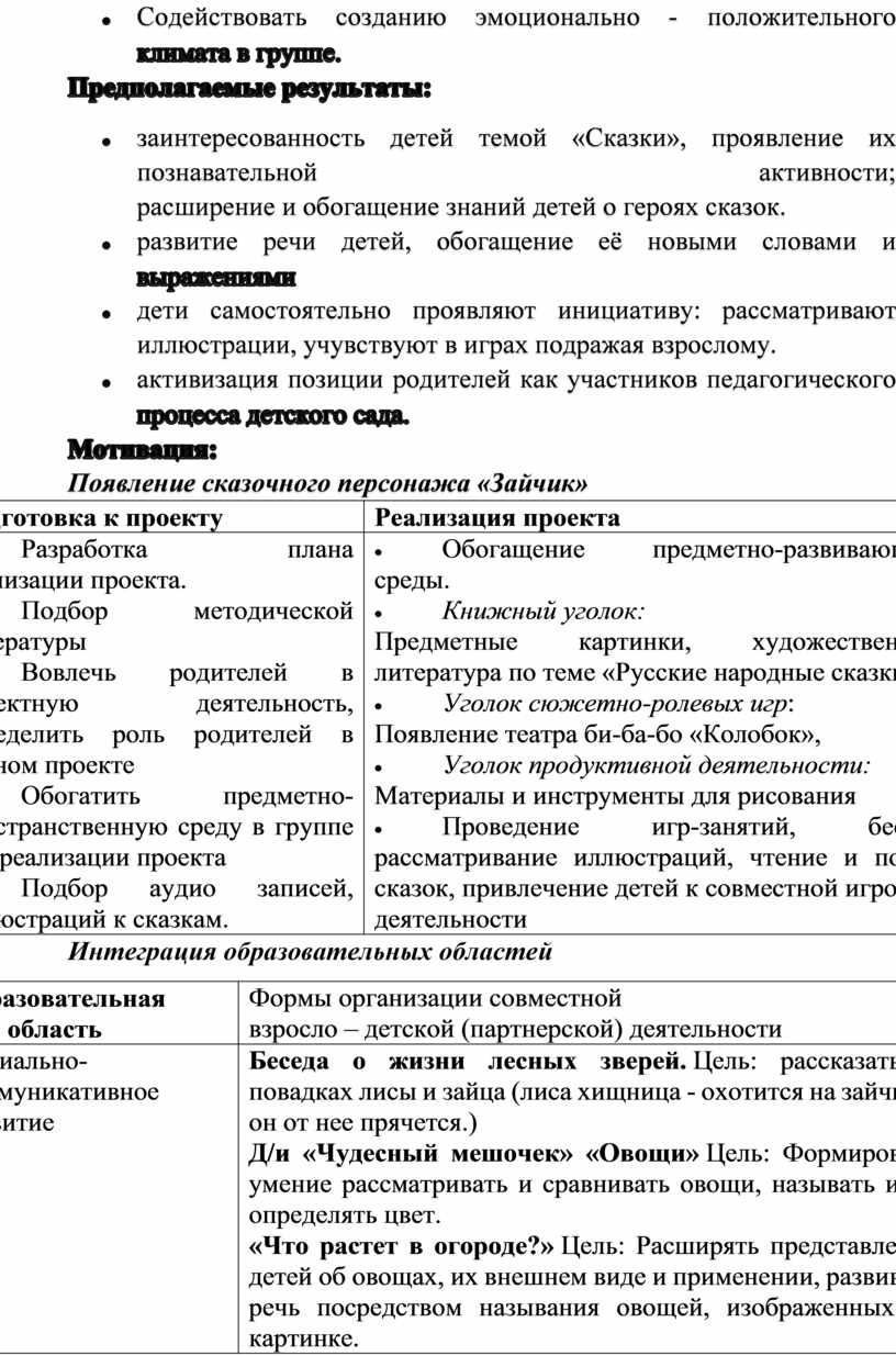 Сегодня сказка играет важнейшую роль в развитии воображения у ребенка, воспитывают у детей любовь к книге. В нашем саду многие занятия начинаются с входа в группу сказочных героев. Дети с удовольствием играют с ними, получая положительный эмоциональный настрой, они лучше усваивают программу. Проект «Здравствуй, сказка!» мы выбрали потому, что эта тема наиболее близка нашим малышам. Поскольку многие дети имеют не достаточный словарный запас и плохо говорят, в проекте мы постарались при помощи сказочных героев активизировать речь, расширить знания детей об окружающем мире. Проект представляет собой ежедневную смену сказки в течение недели. За неделю мы погостили в таких сказках как: «Курочка Ряба», «Репка», «Колобок».